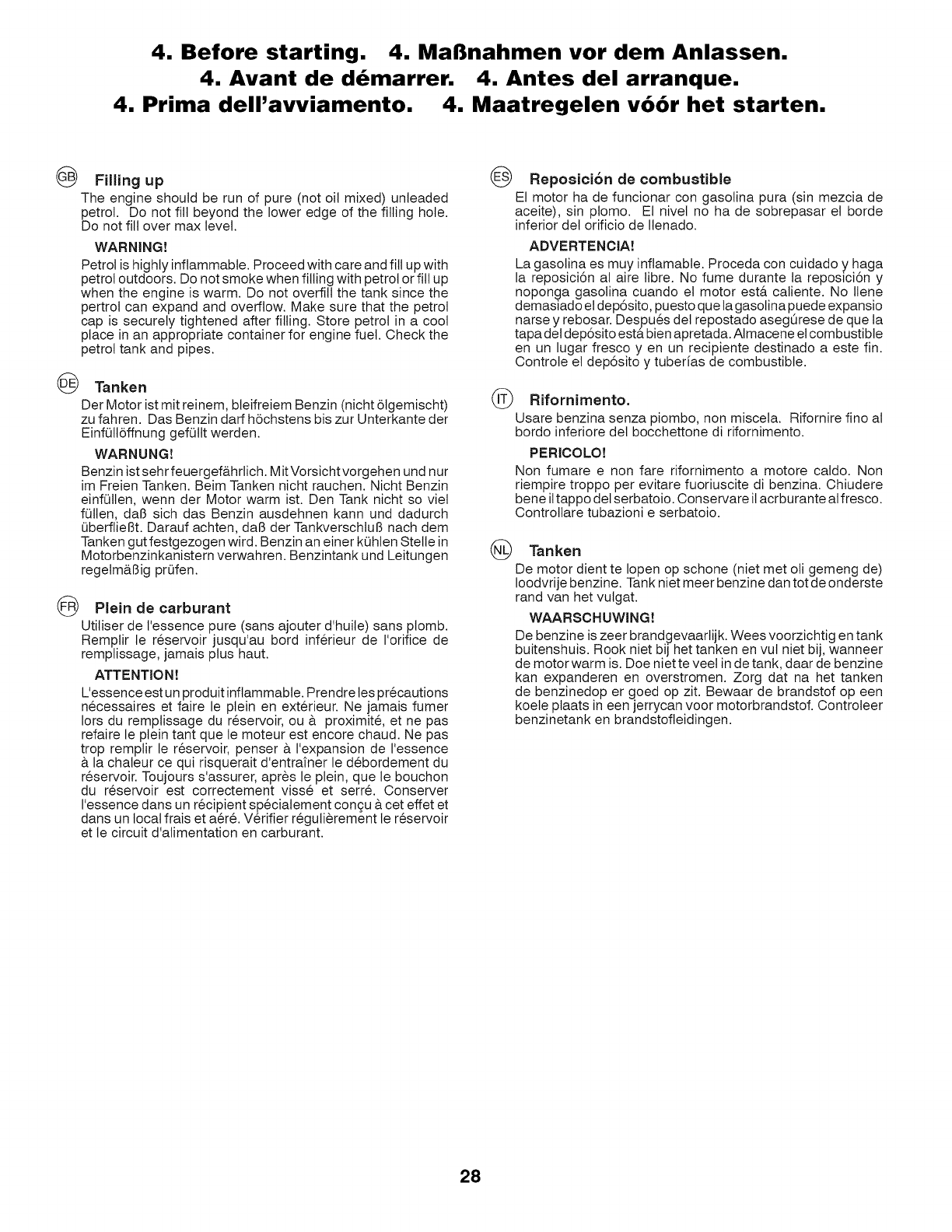 Maatregelen v66r het starten. 20