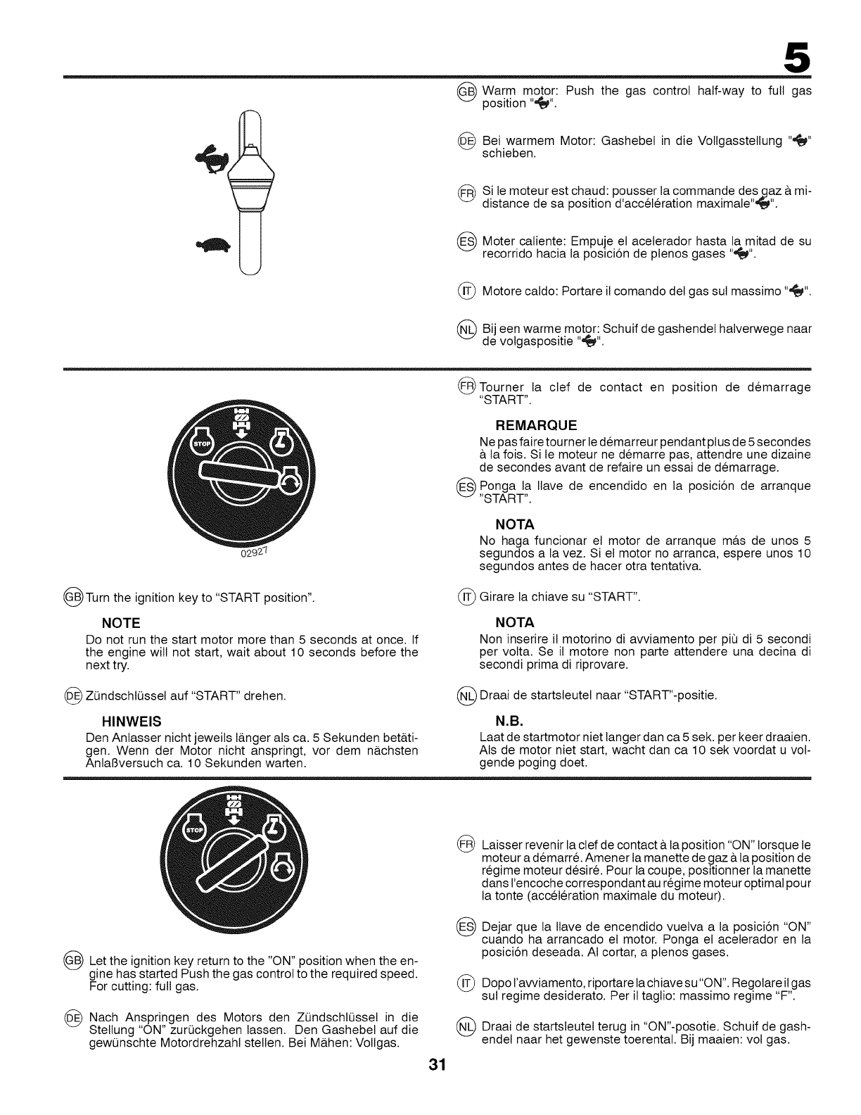 • Togliere la candeta e versare un cucciaio di olio da motori