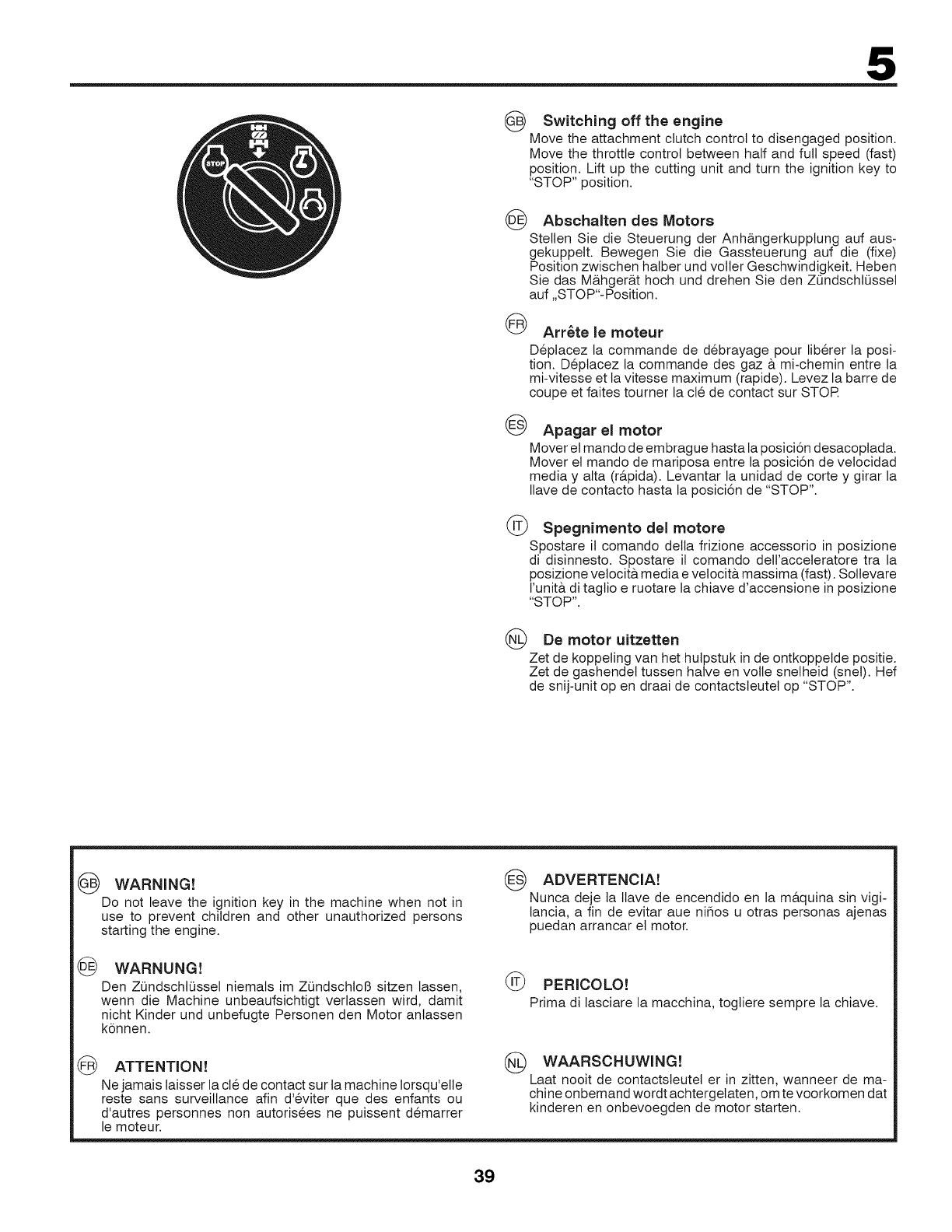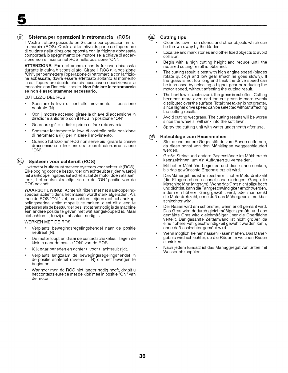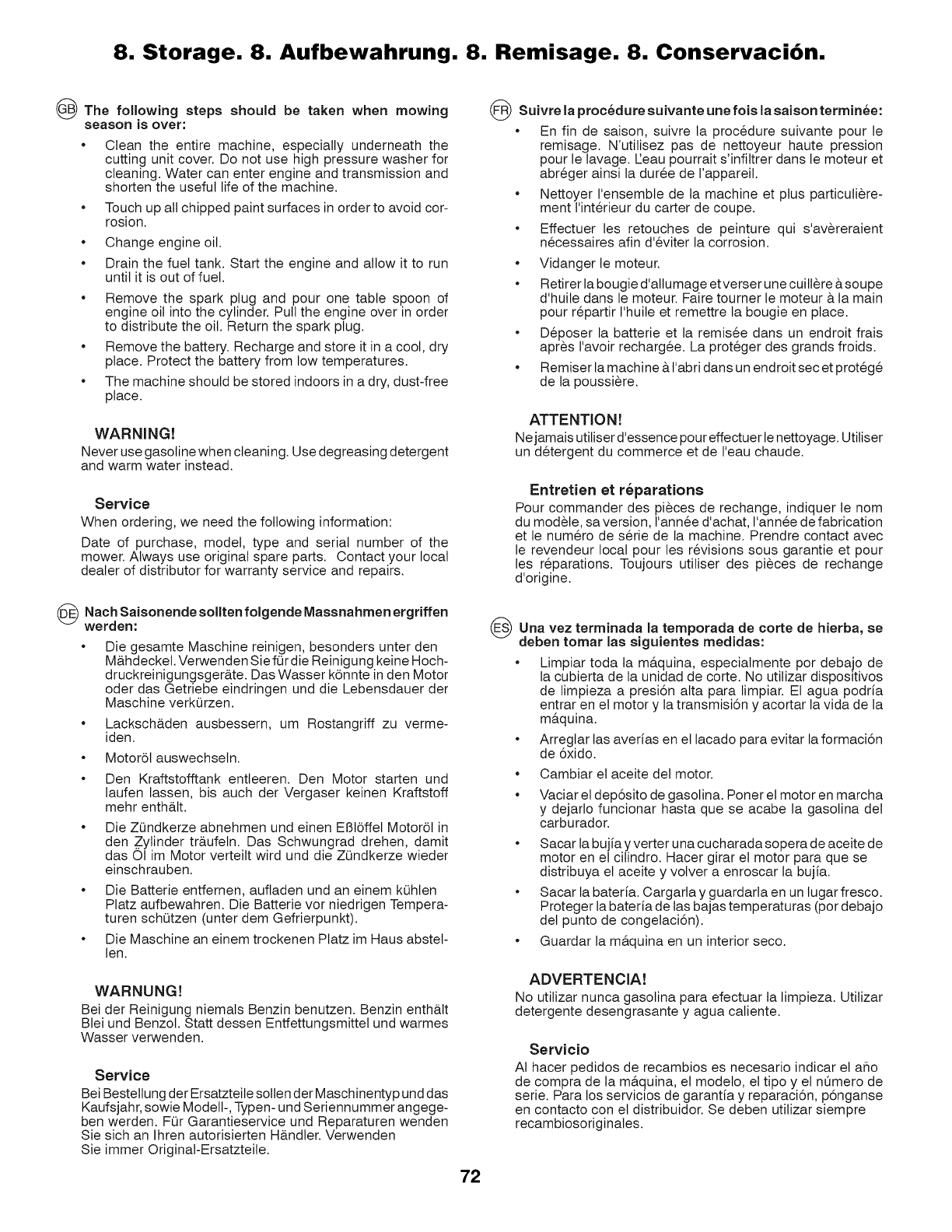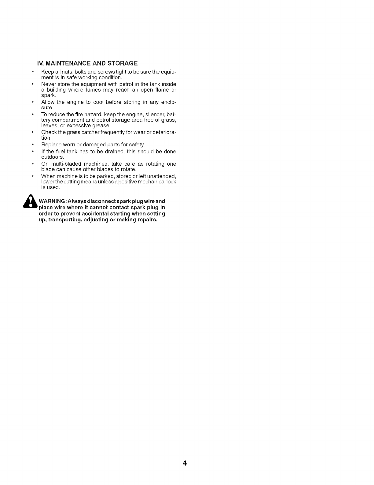 • Tenere il tagtiaerba al chiuso in locale asciutto.