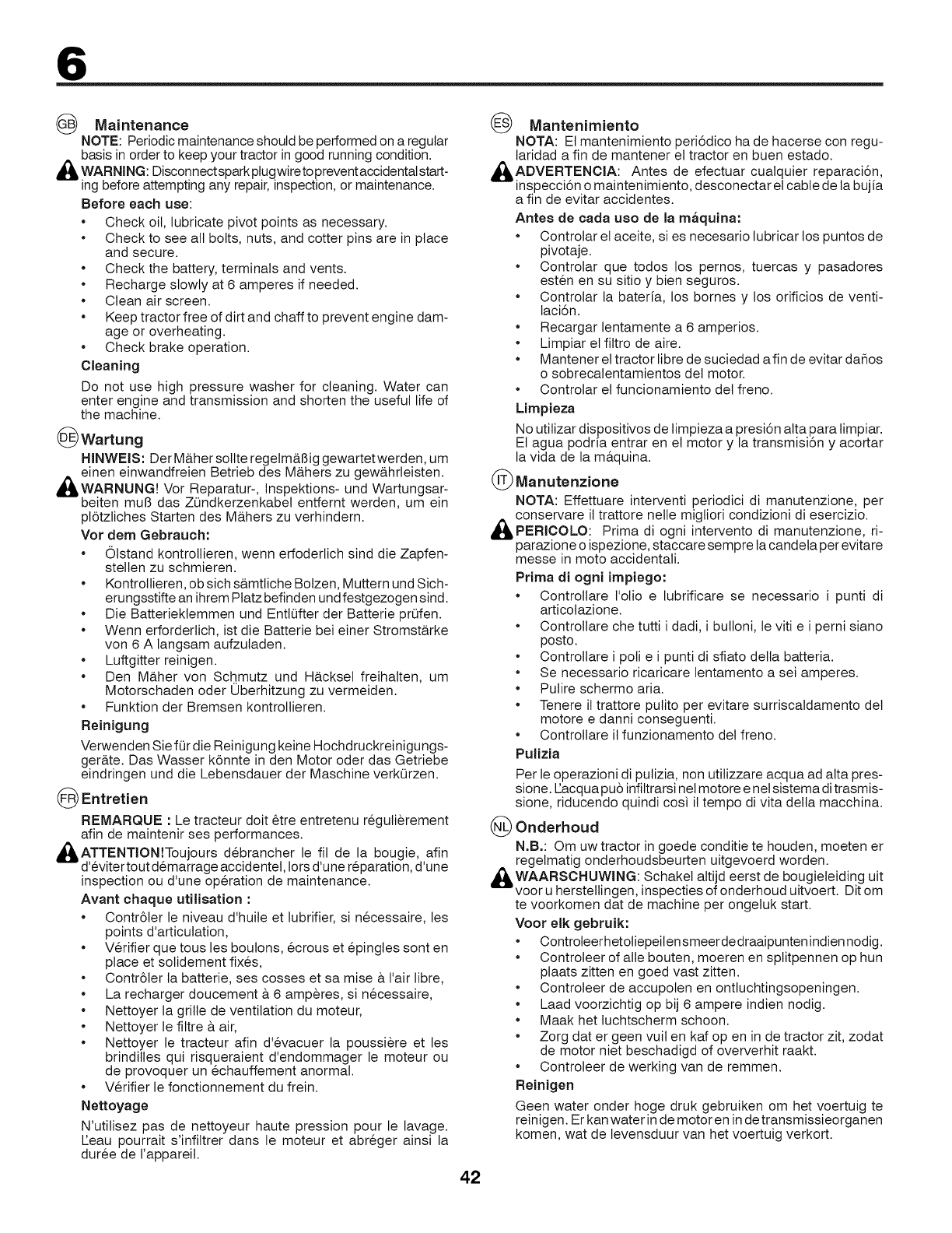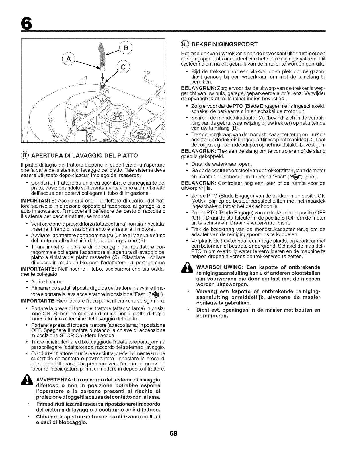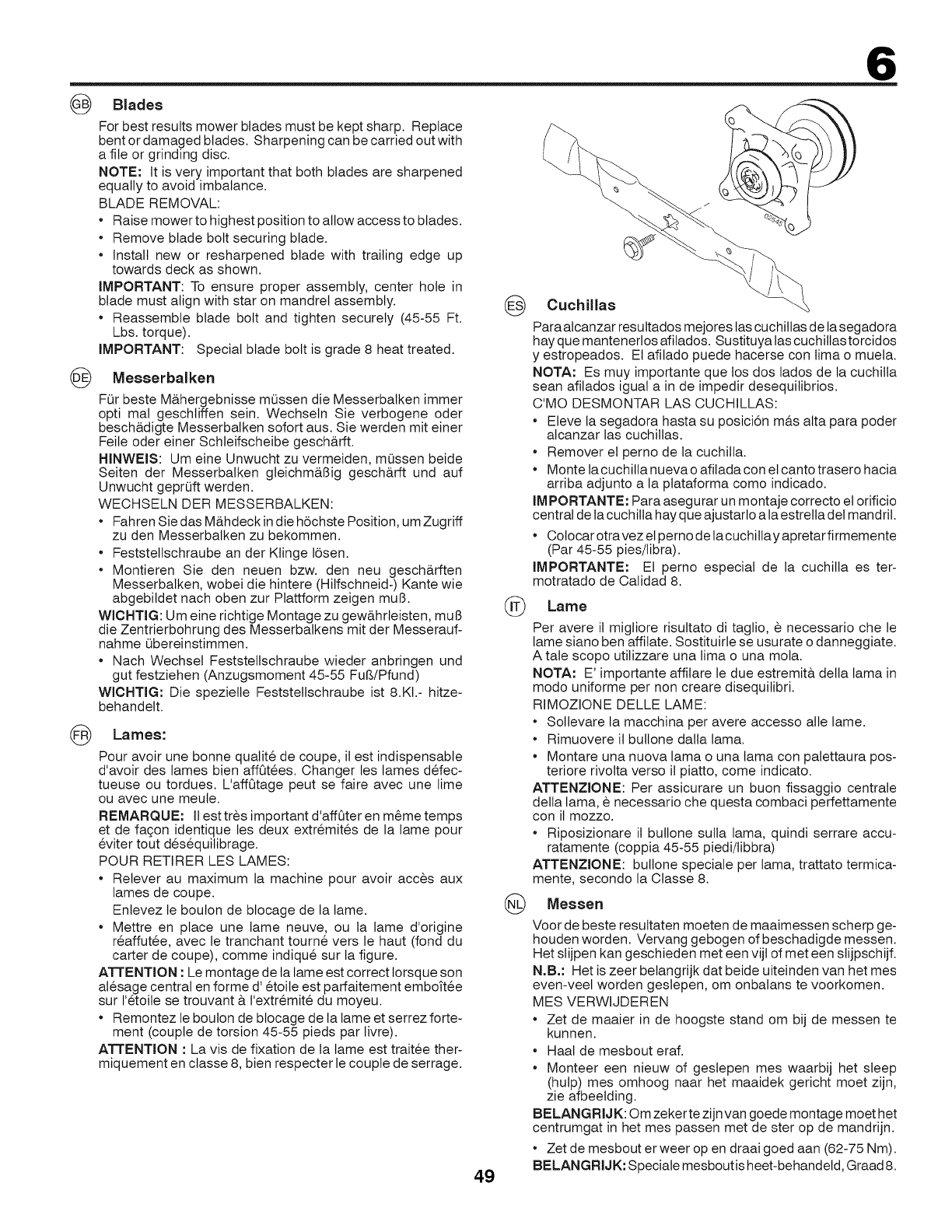 •Pulire tutto il tagliaerba e particolarmente sotto il coperchio
