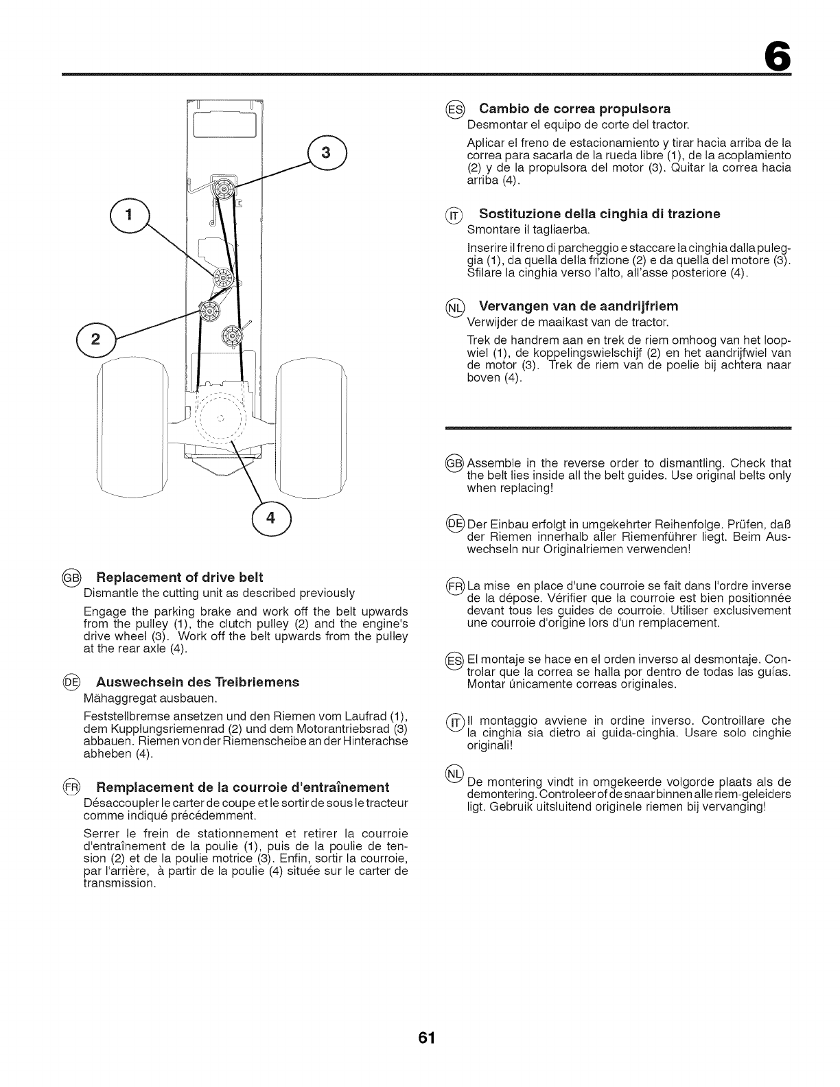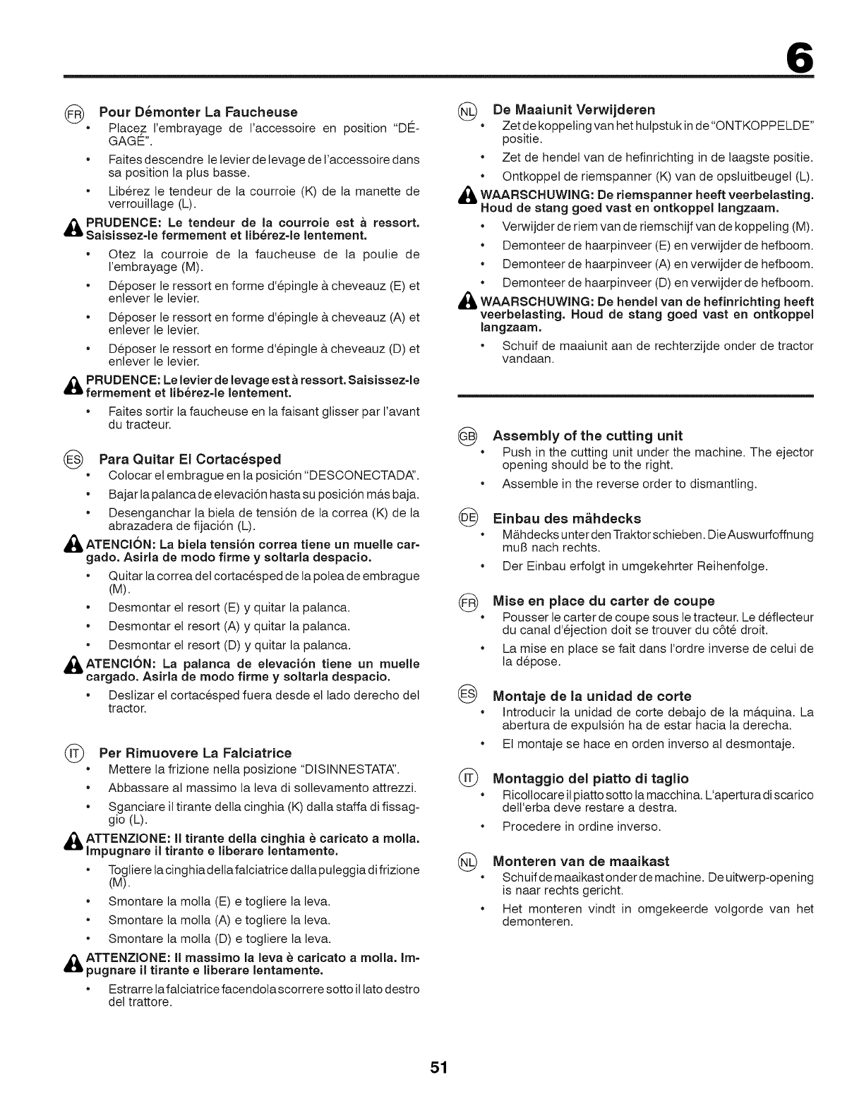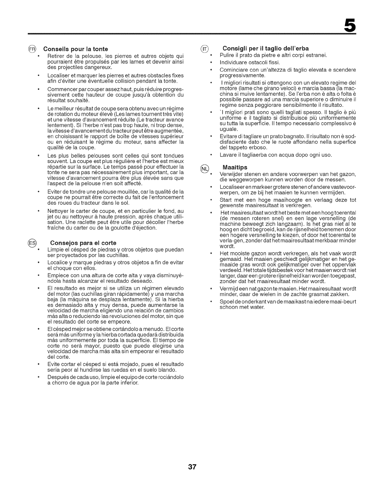 •Pulire tutto il tagliaerba e particolarmente sotto il coperchio