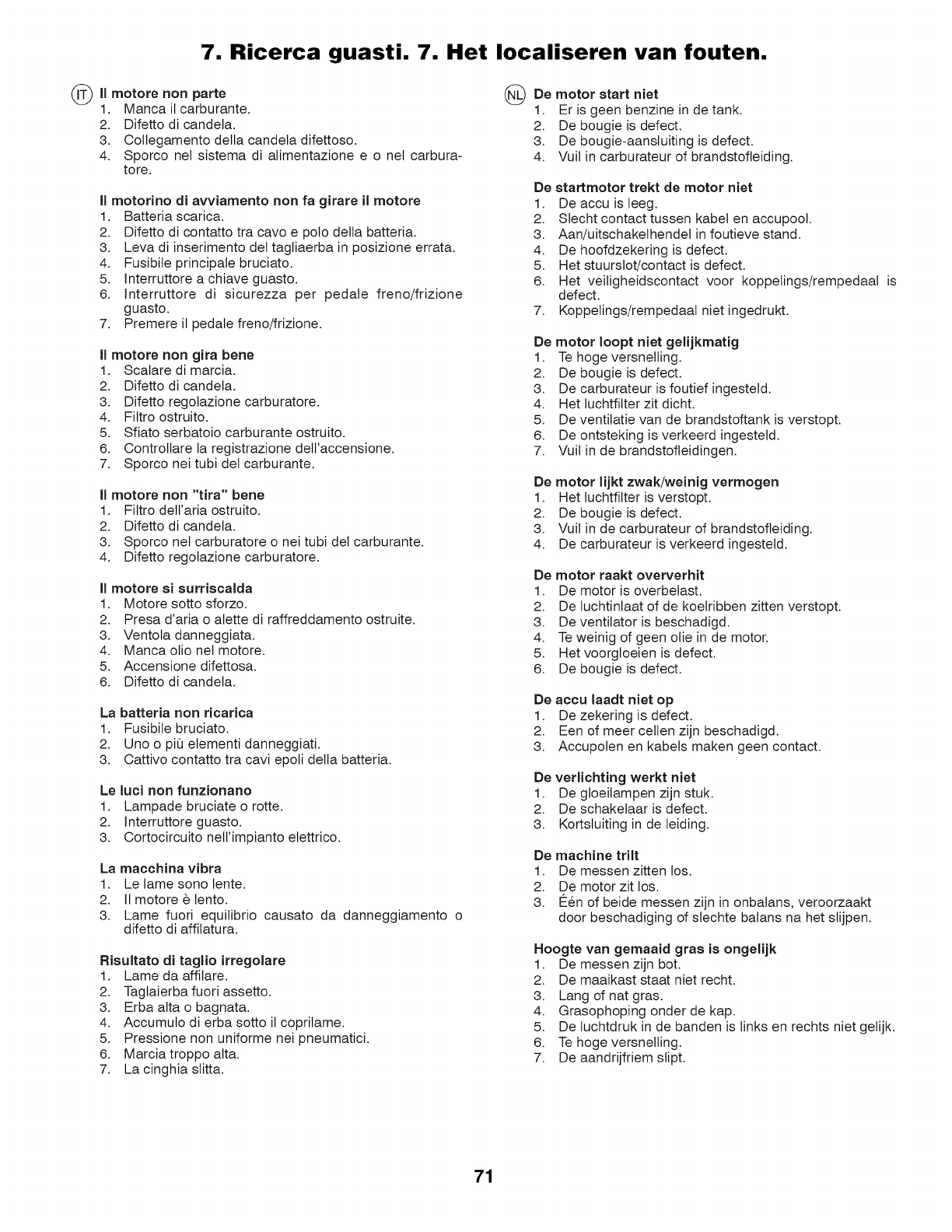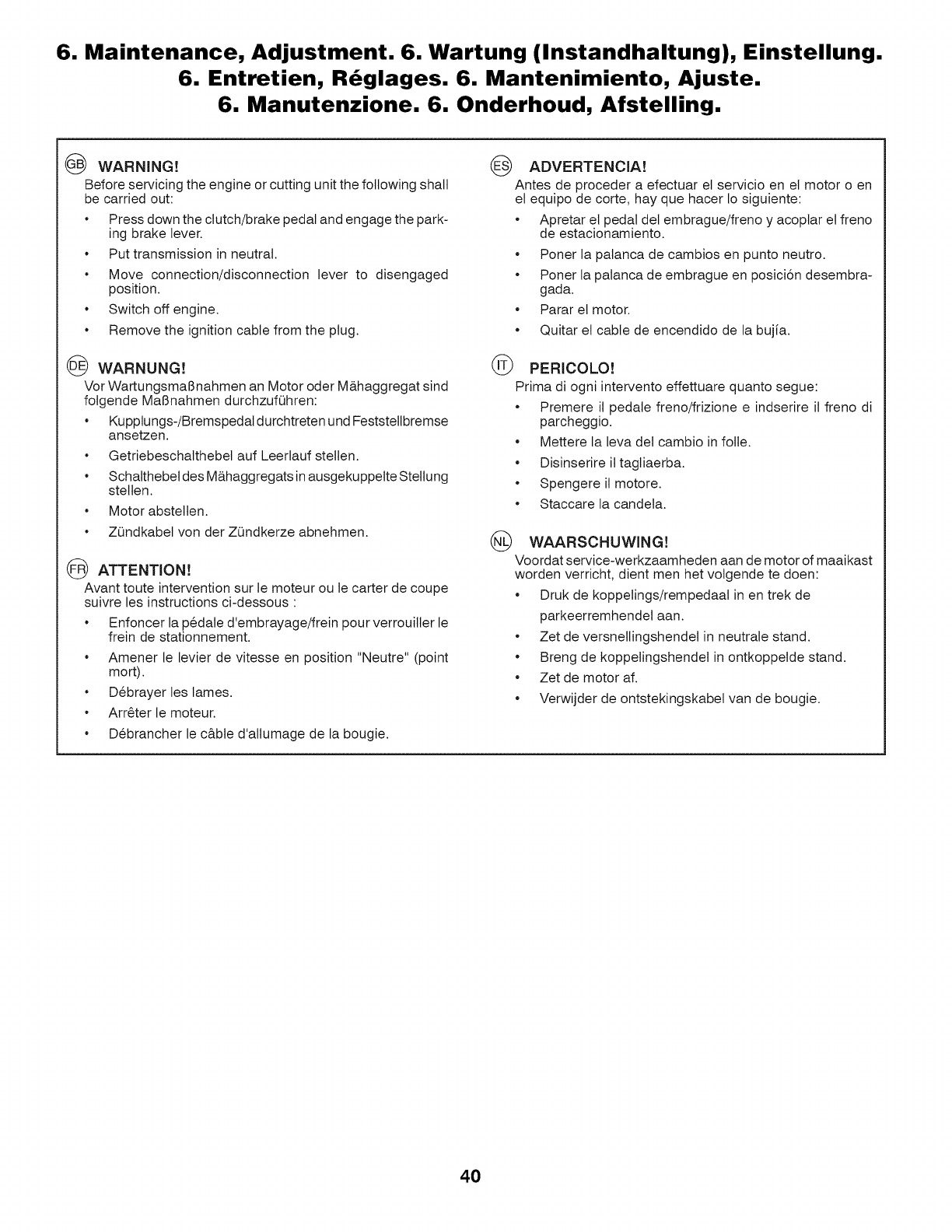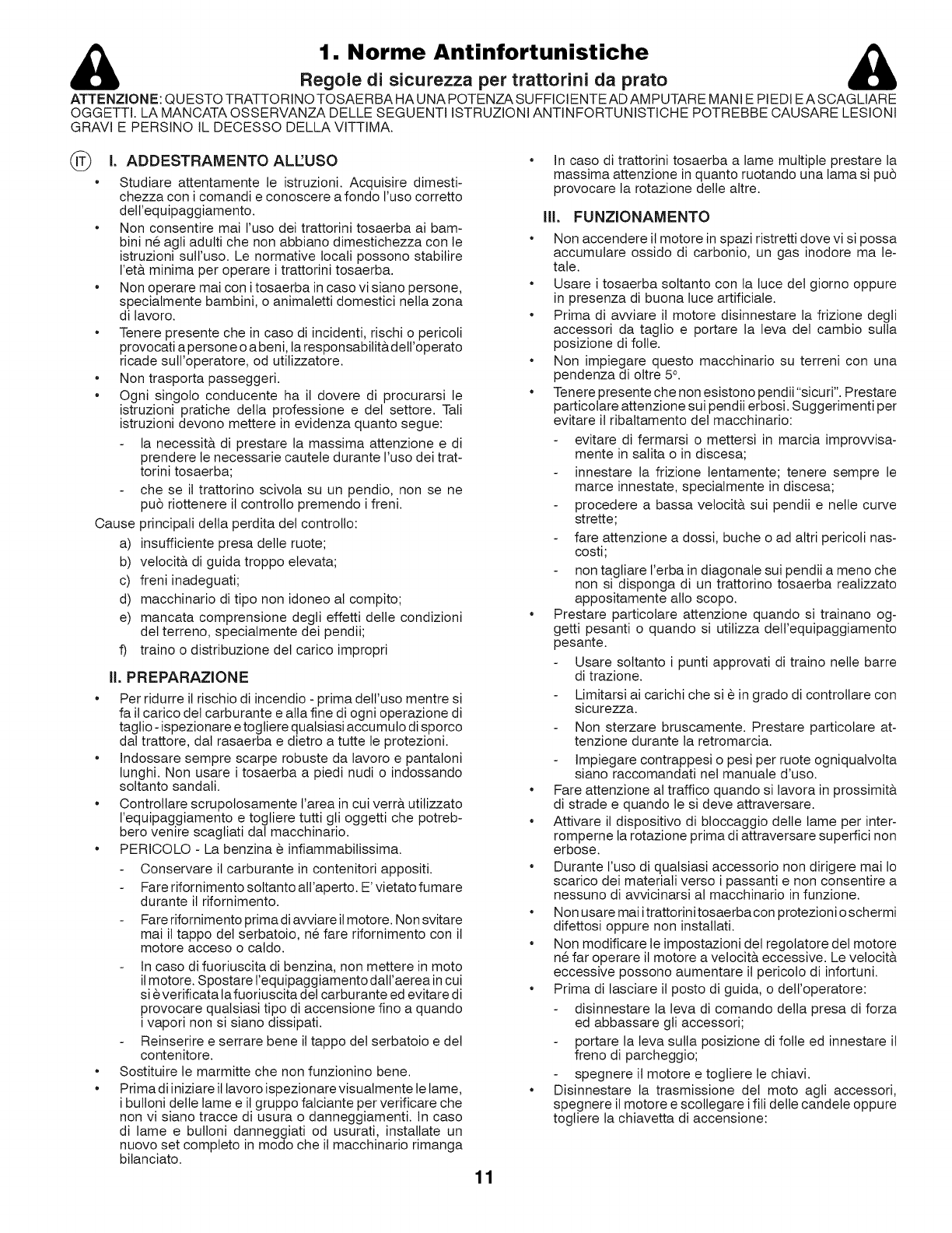 della falciatrice. Per le operazioni di pulizia, non utilizzare