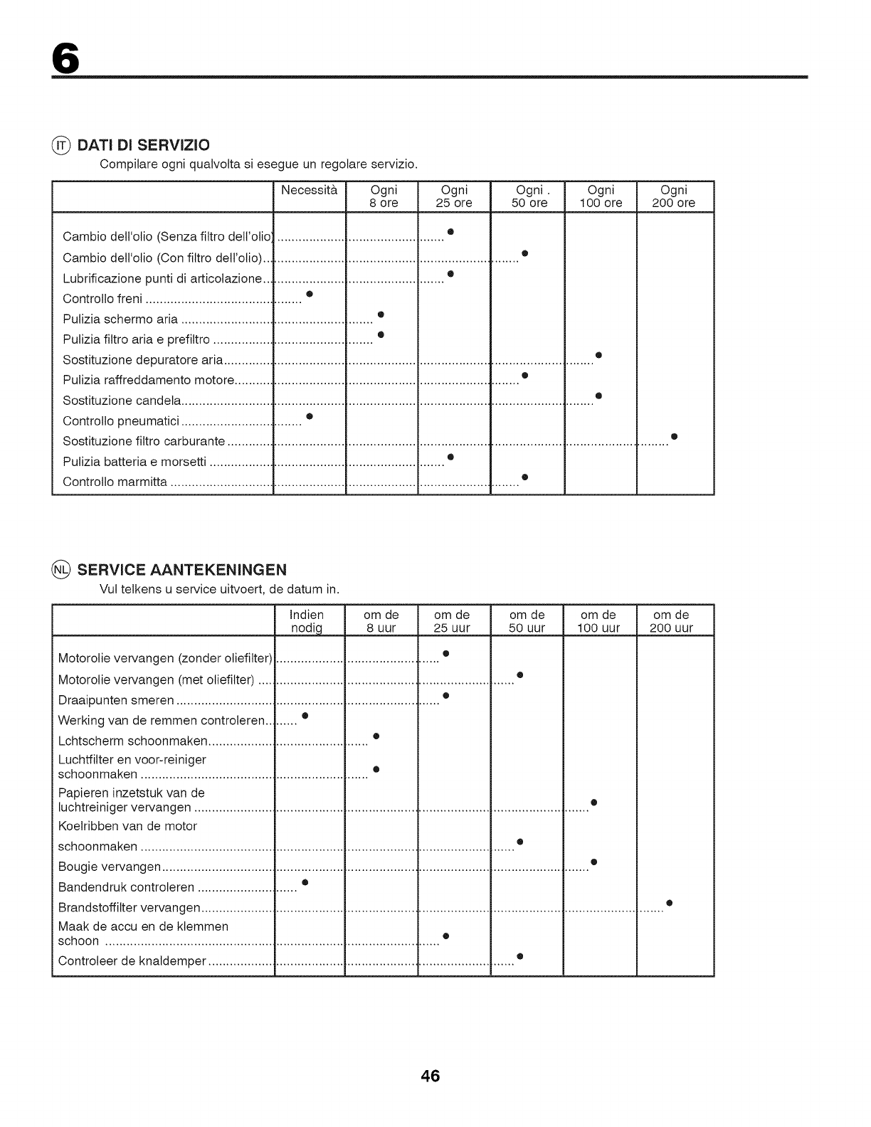 • Cambiare I'olio det motore.