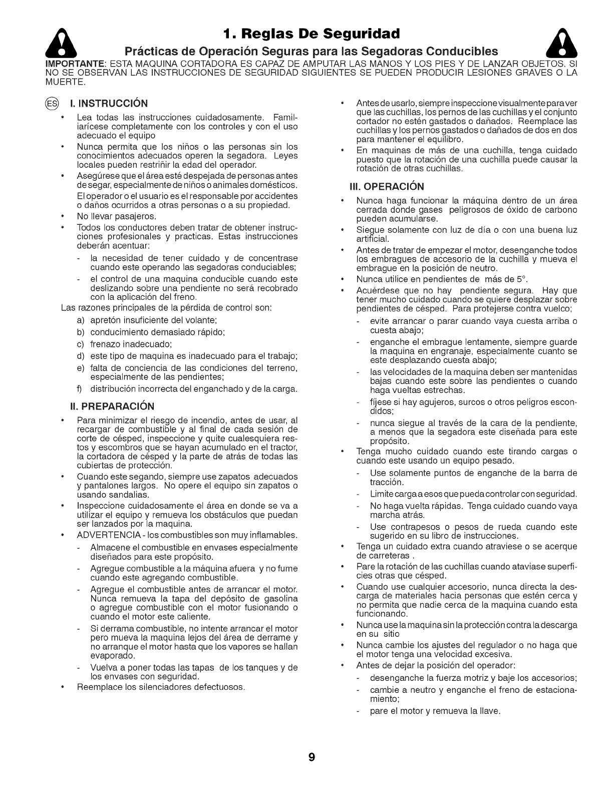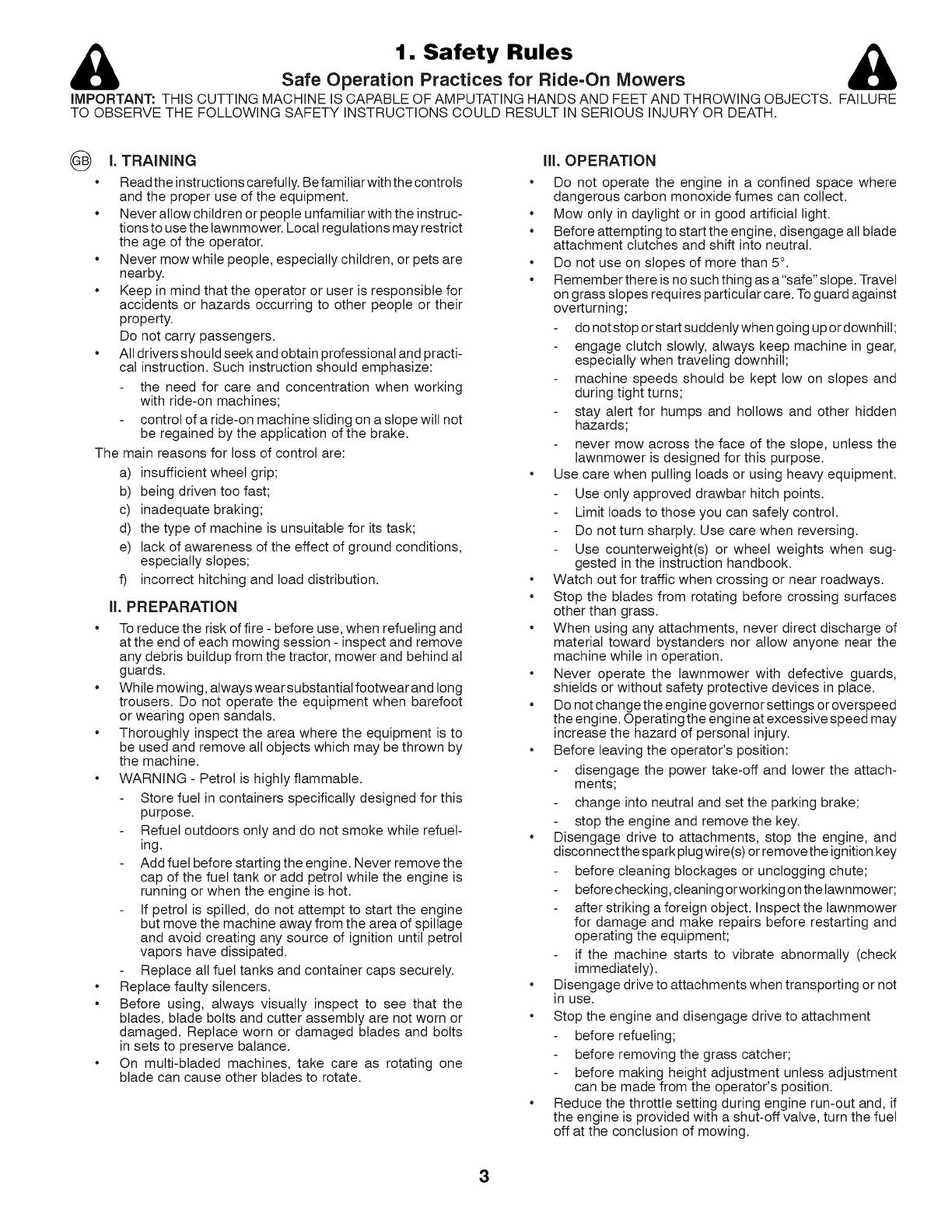 Safe Operation Practices for Ride=On Mowers