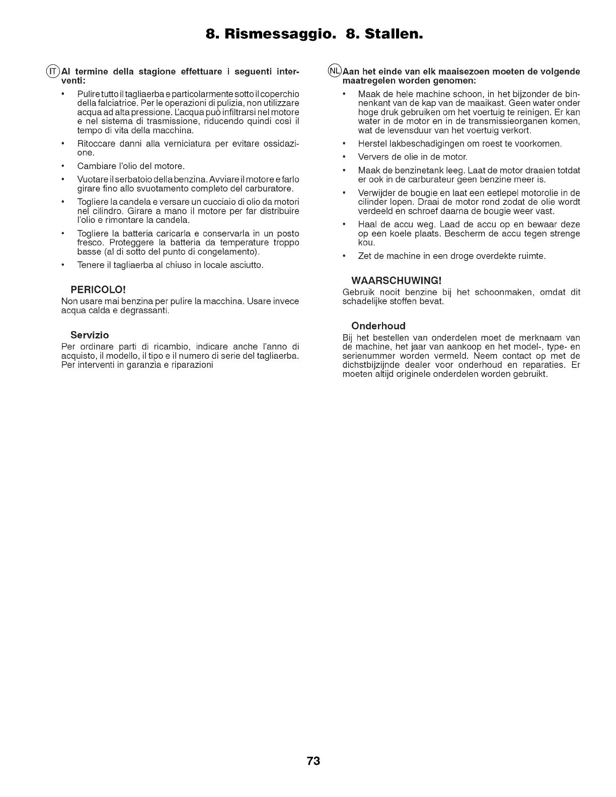 8. Rismessaggio. 8. Stallen.
