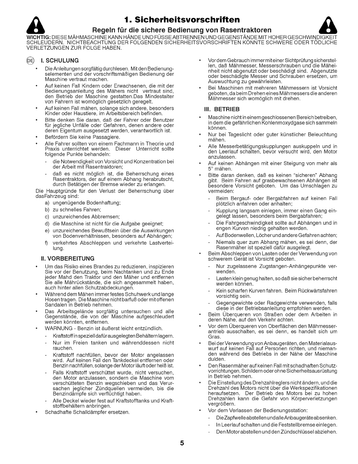 Sicherheitsvorschriften.