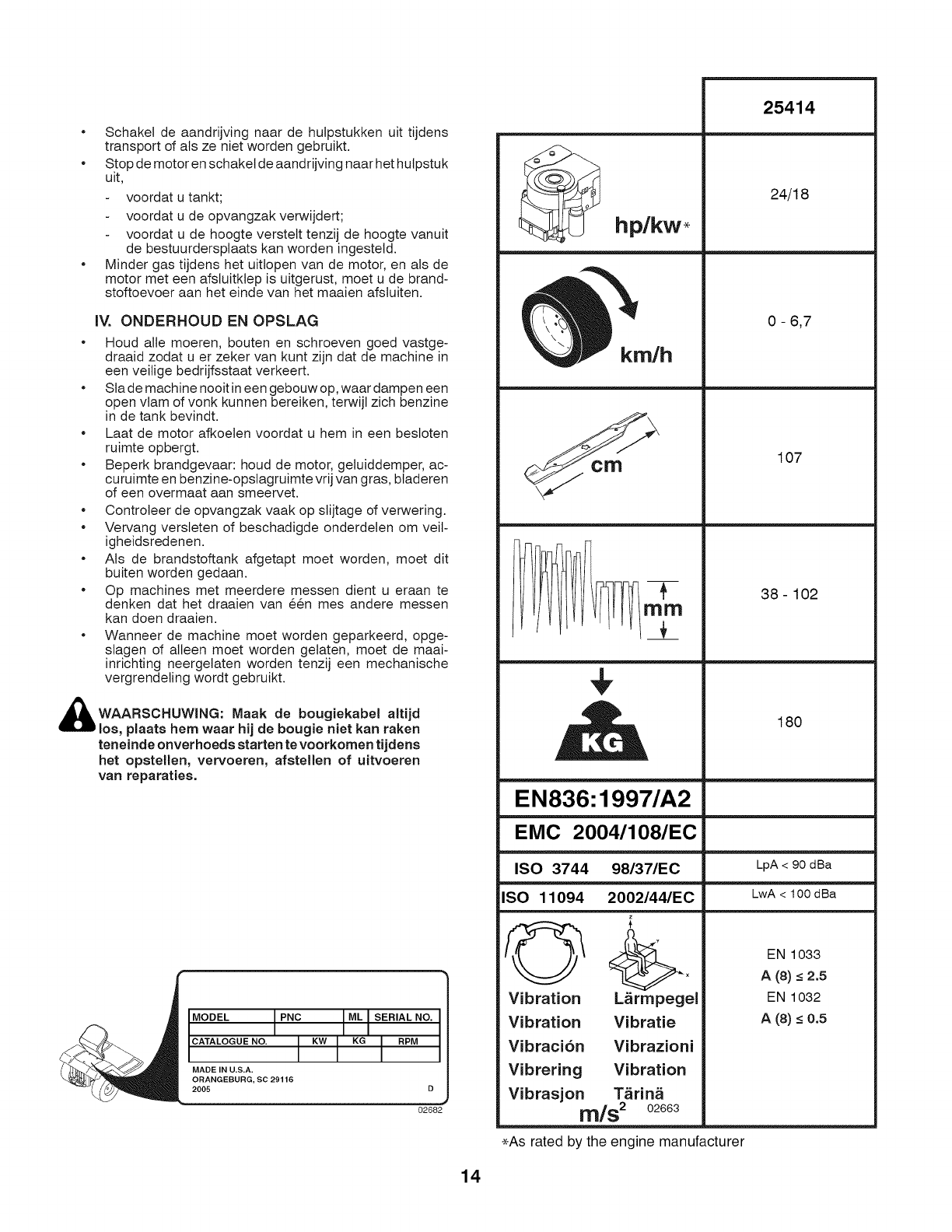 de machine, het jaar van aankoop en het model-, type- en