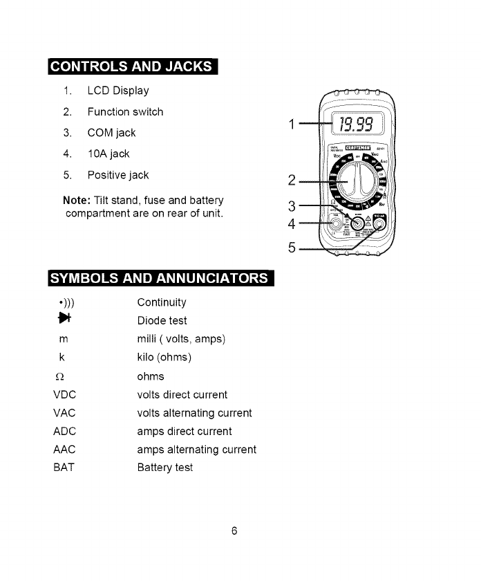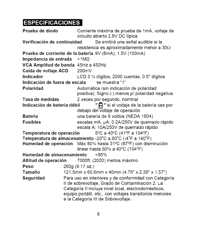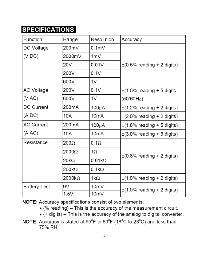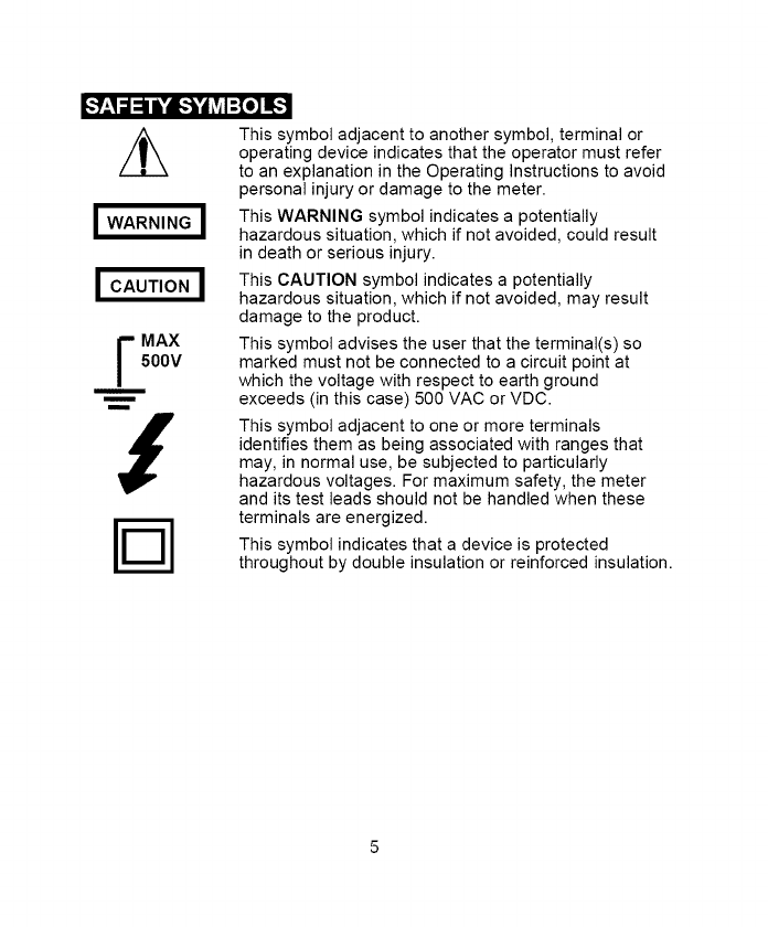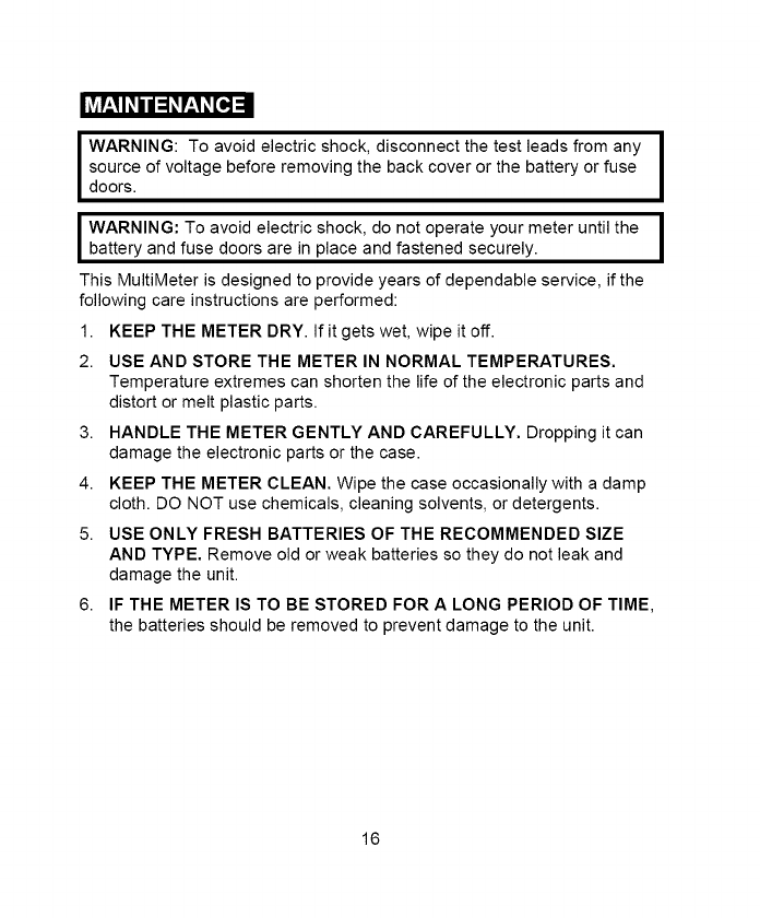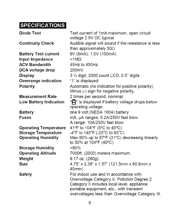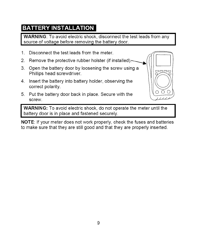 7. NEVER operate the meter unless the back cover and the battery and