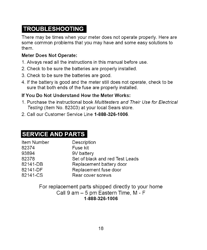 IfthisCRAFTSMANManualRangingMultiMeterfailstogivecomplete