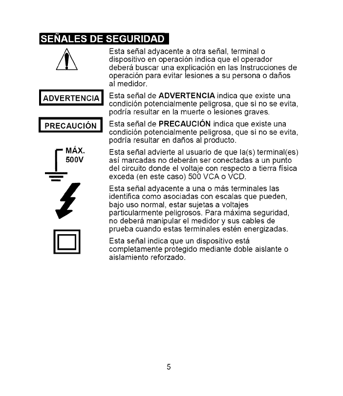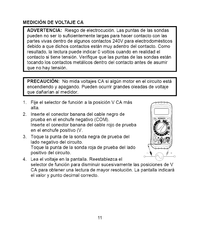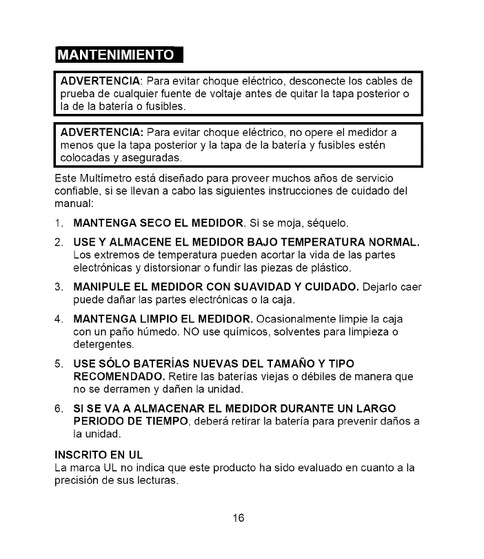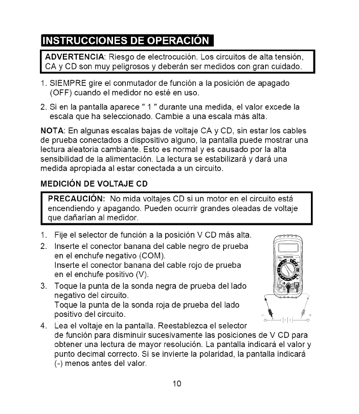 I ADVERTENClA: Para evitar choque electrico, no opere el medidor a I
