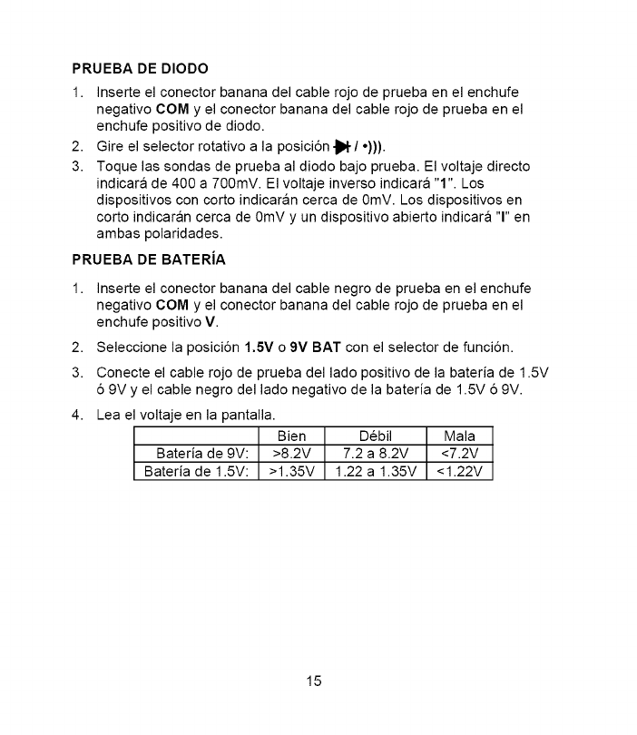 Seleccione la posici6n 1.5V o 9V BAT con el selector de funci6n.