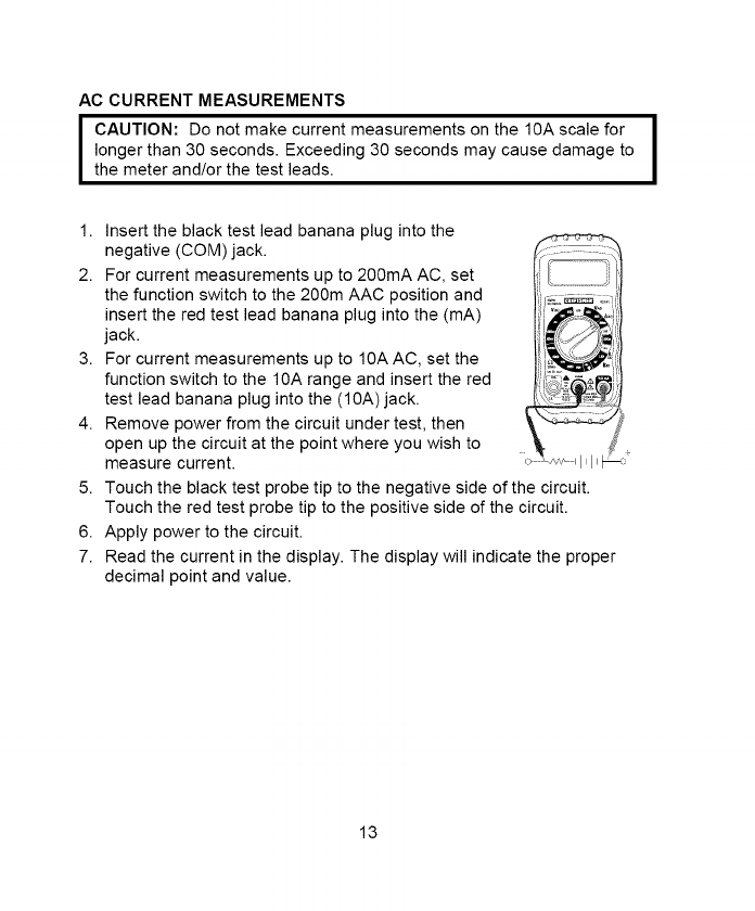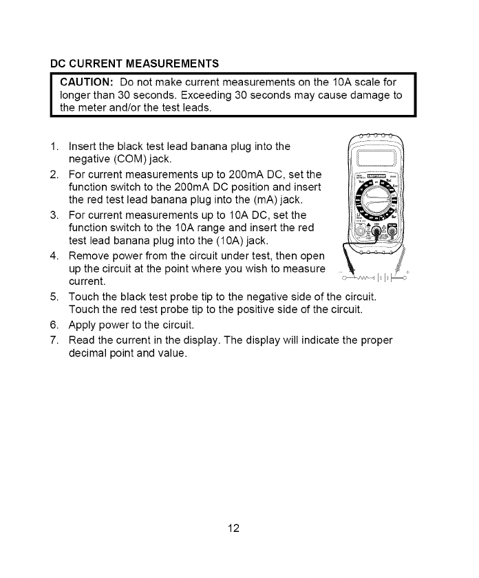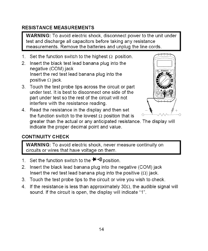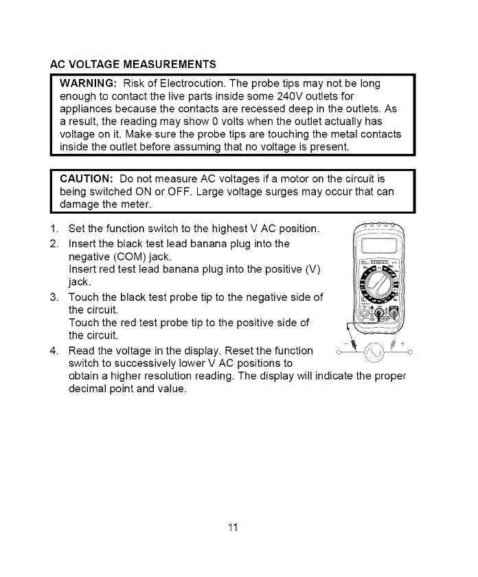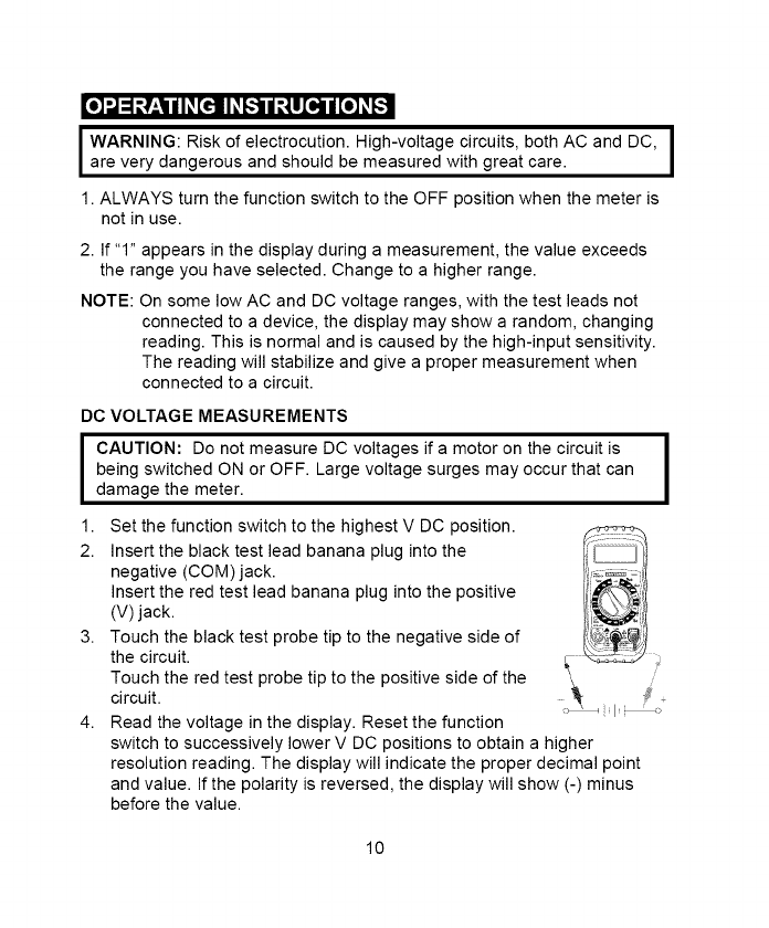 4. NEVER connect the meter leads across a voltage source while the