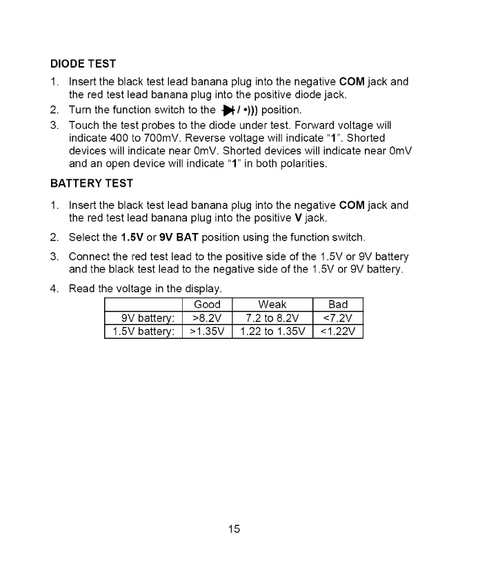 the power when making resistance or diode tests.