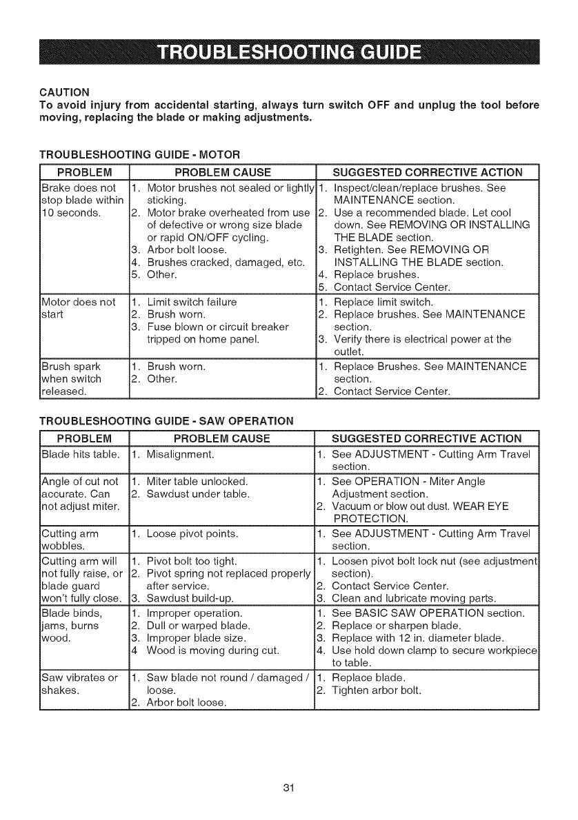 User Manual: CRAFTSMAN CRAFTSMAN Miter Saw Manual CRAFTSMAN Miter Saw Owner's Manual, CRAFTSMAN Miter Saw installation guides