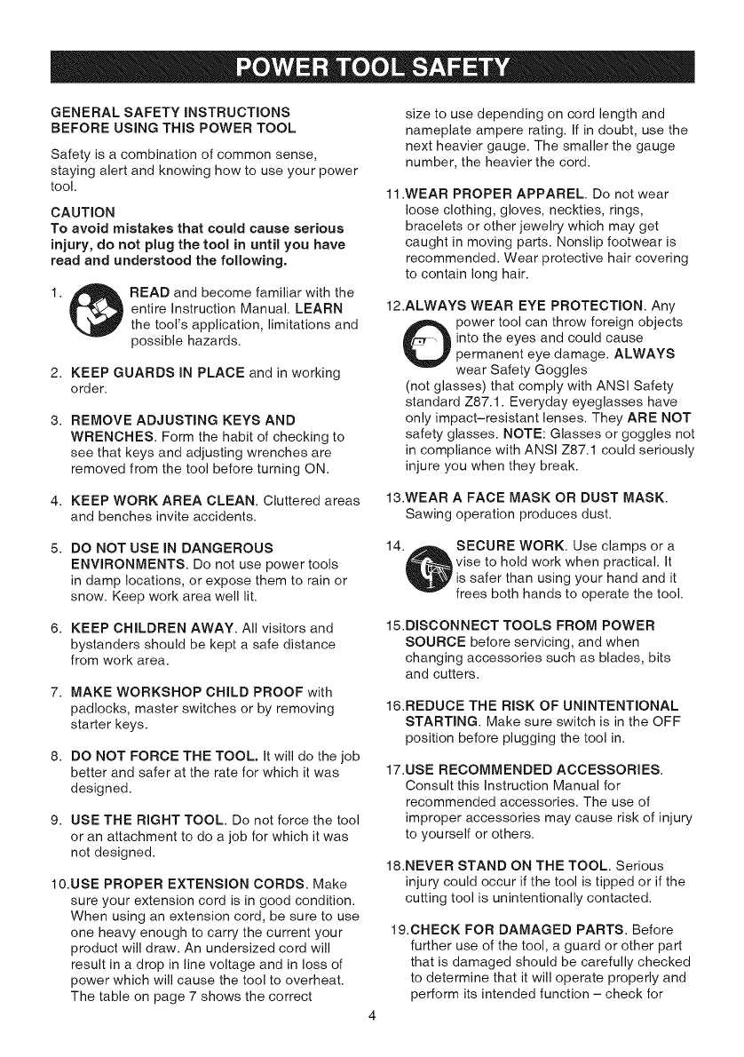 Your power tool and its instruction Manual may contain "WARNING iCONS" (a picture symbol
