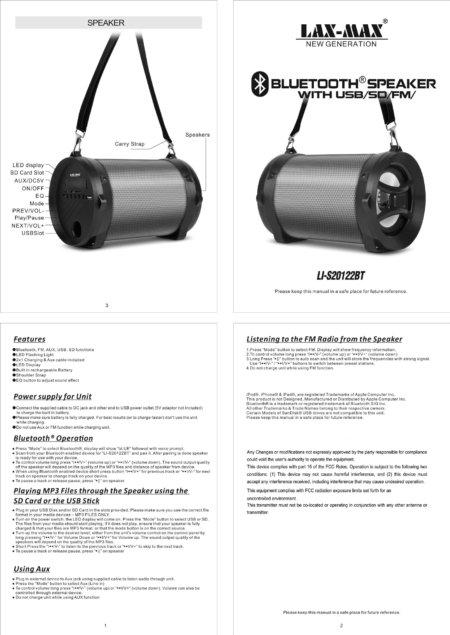 CROSBY LIMITED Bluetooth Speaker Users Manual