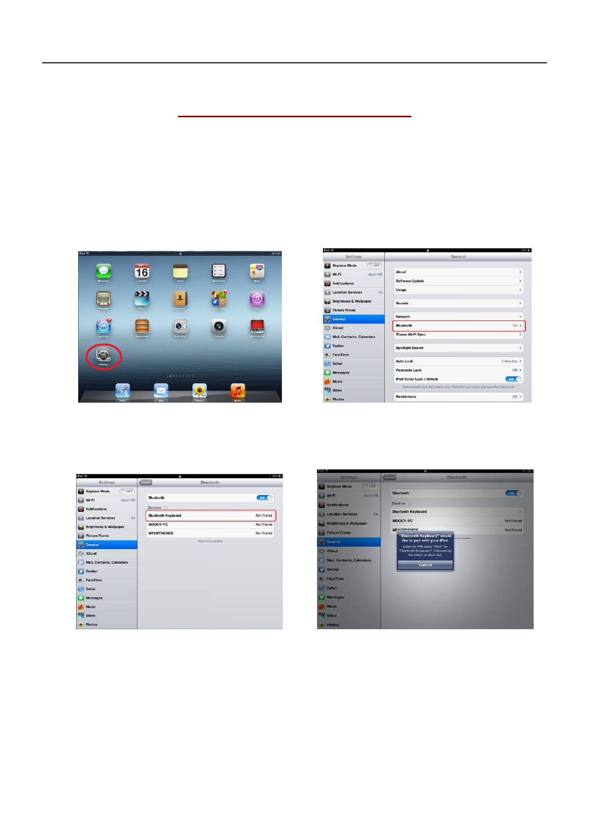 Turn your iPad on and tap “Settings”---“General”---“Bluetooth”