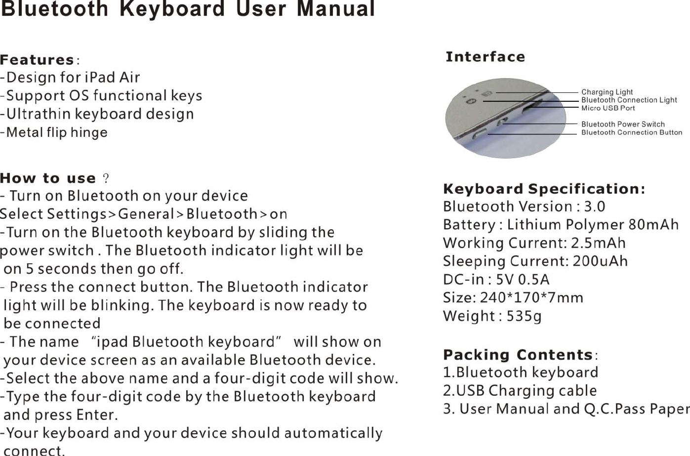 CTECH SCIENCE and TECHNOLOGY X9003-AIR Bluetooth Keyboard User Manual