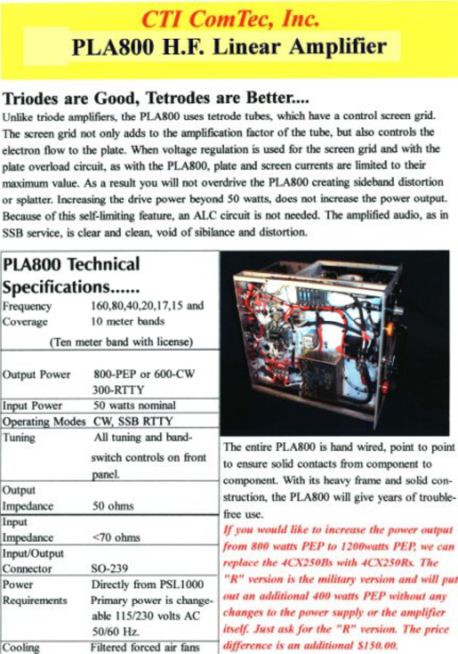 CTI ComTec, Inc. Amplifier PLA-800 PLA800USERSMANUAL