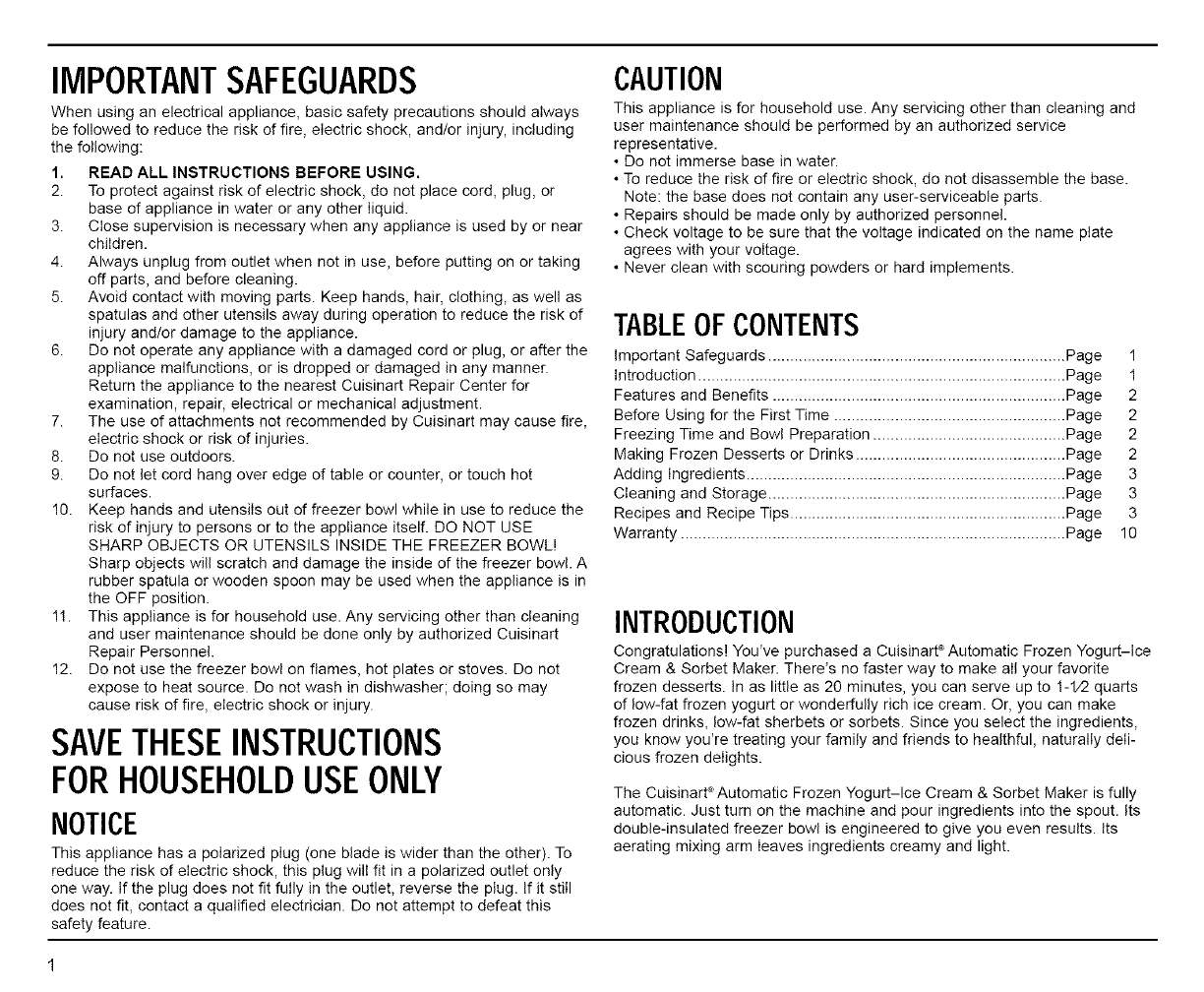 Freezing Time and Bowl Preparation ............................................ Page 2