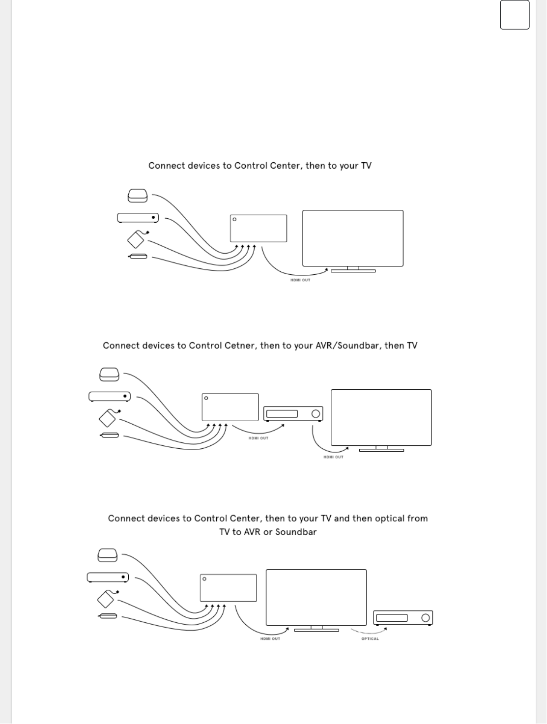 7. Plug in an HDMI cable from the OUT port on Control Center into your AVR, Soundbar, or
