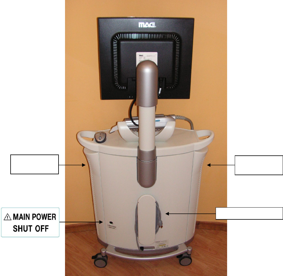 (4) Press the MAIN POWER SHUT OFF switch on the back of the cart to remove power from