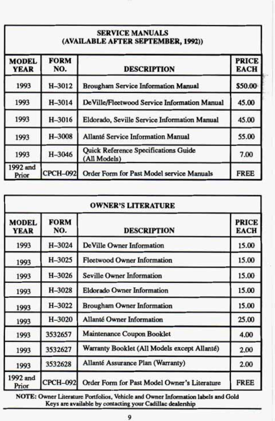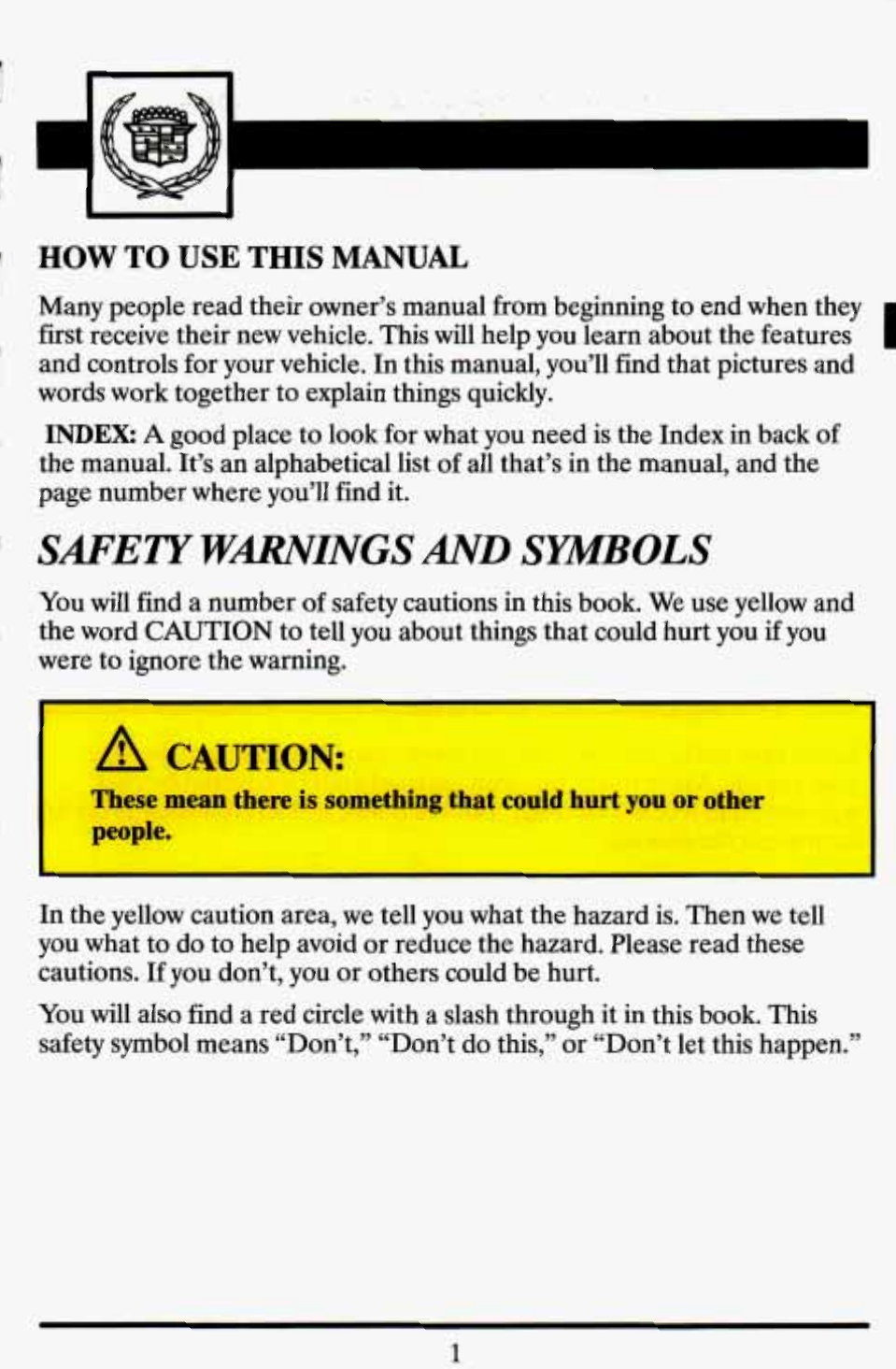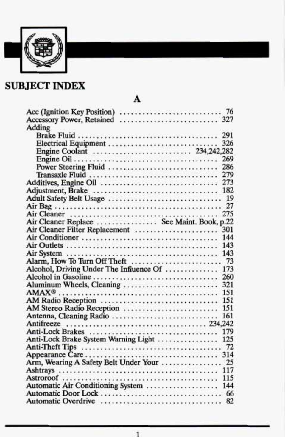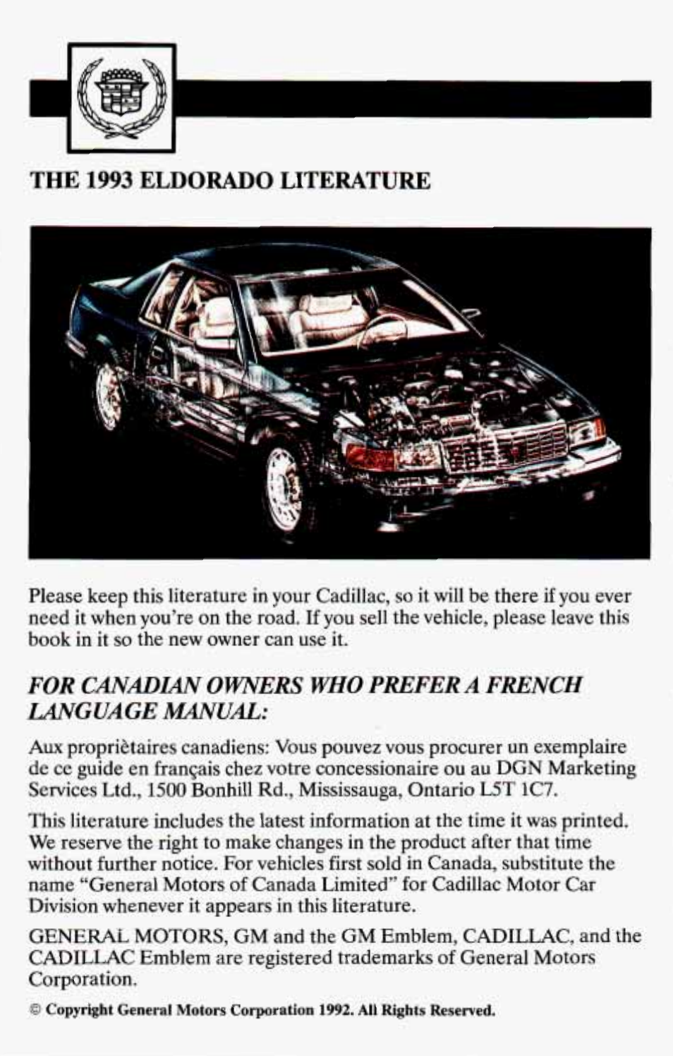 Cadillac 1993 Eldorado Owners Manual Owner's