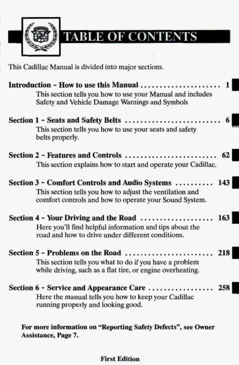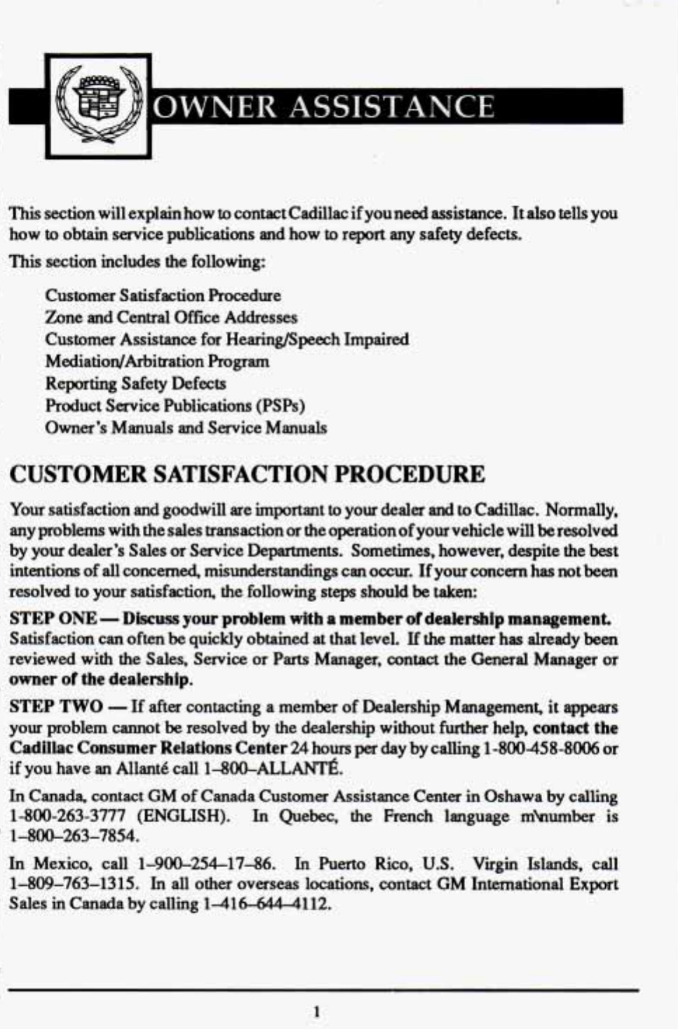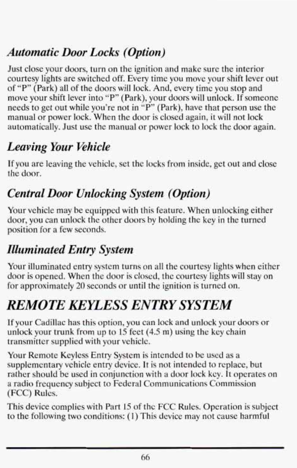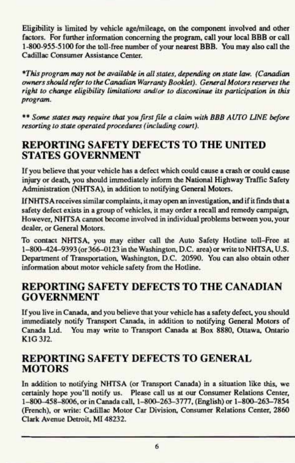 Cadillac 1993 Eldorado Owners Manual Owner's