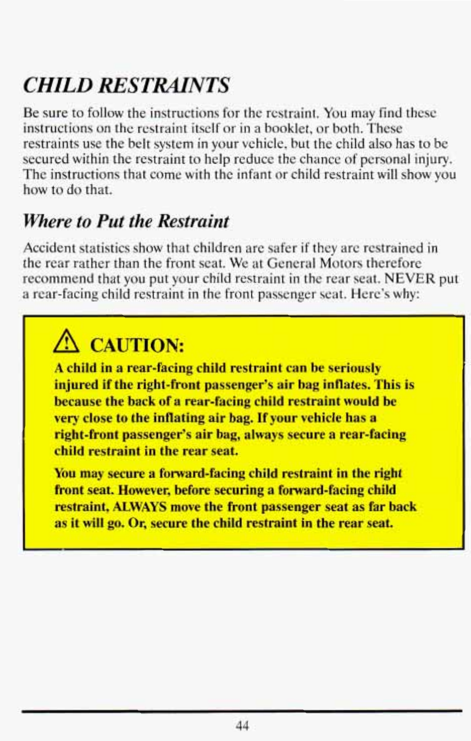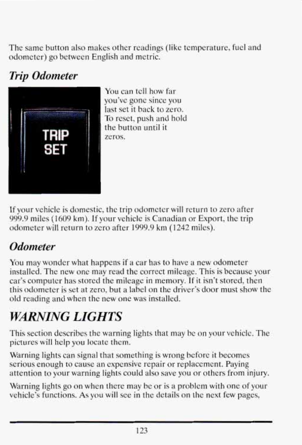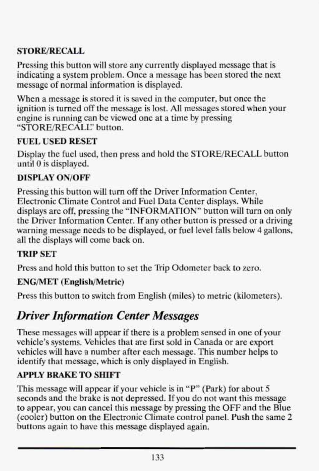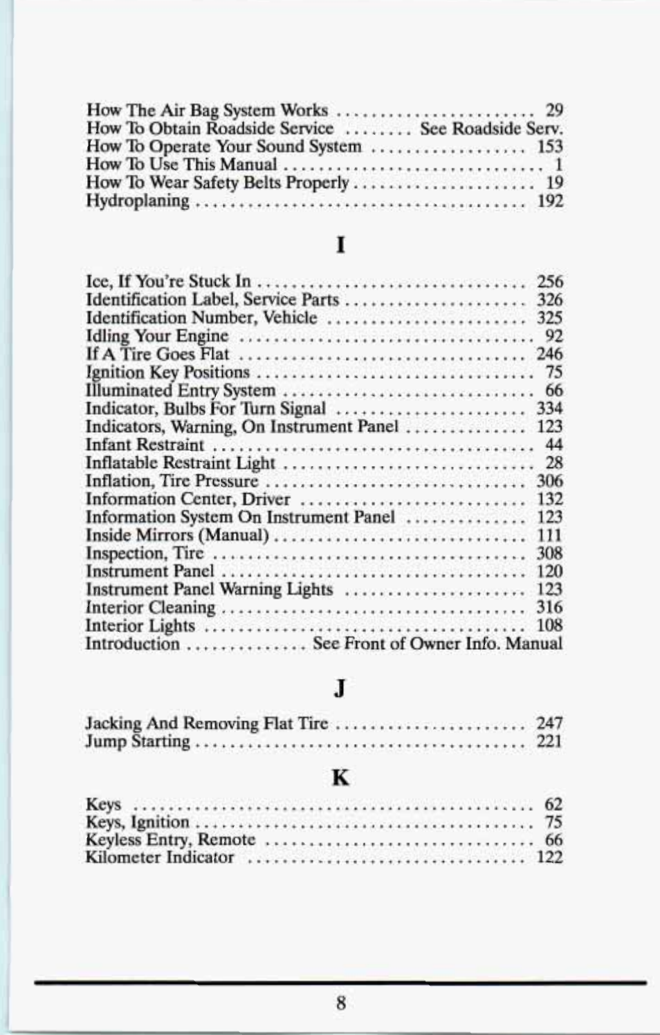 Cadillac 1993 Eldorado Owners Manual Owner's