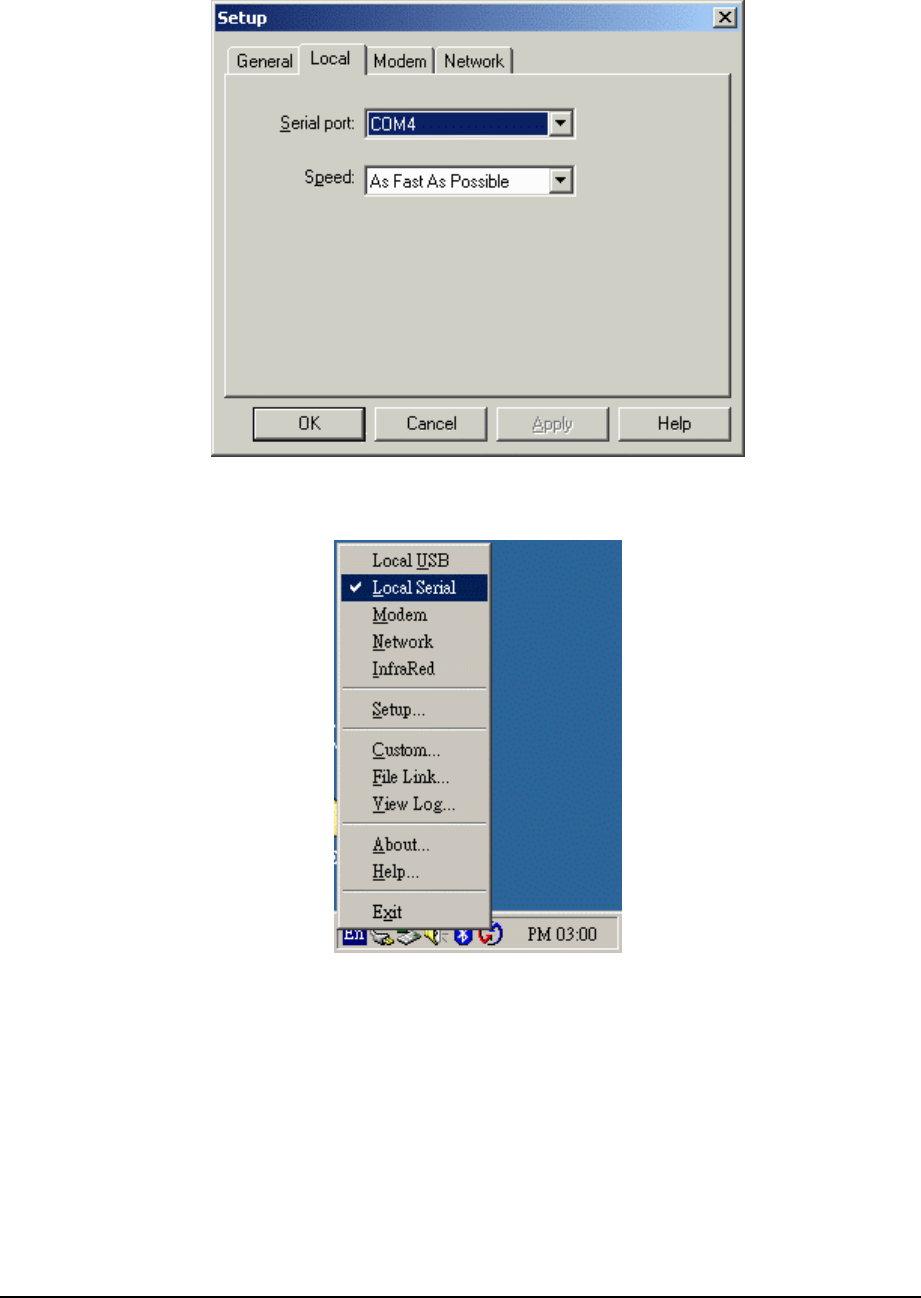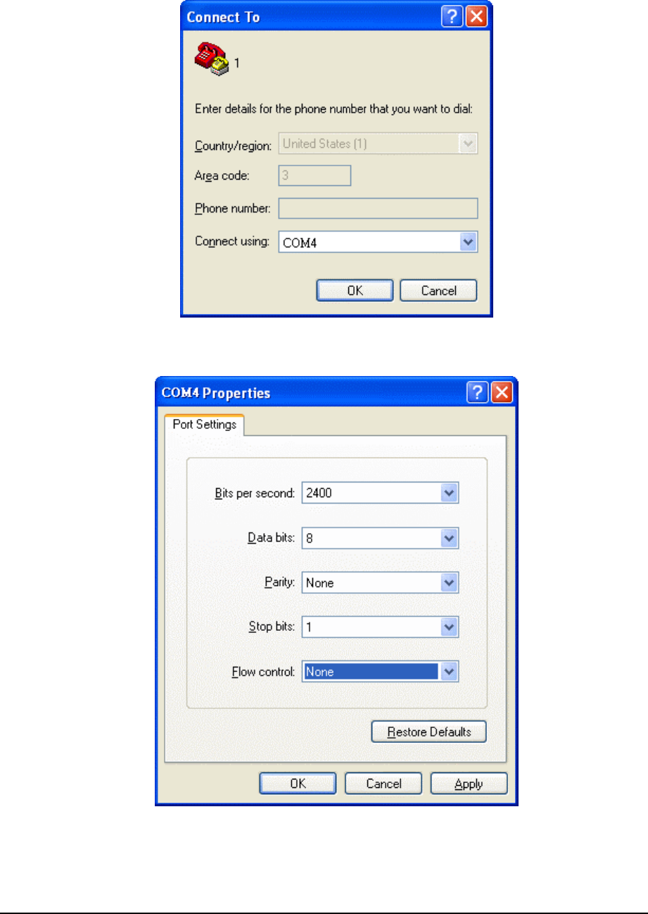 6. On the client side, open HyperTerminal. Choose the COM port used by the Serial
