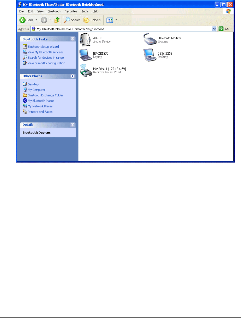 choose Entire Bluetooth Neighborhood, and select the Bluetooth device that you want