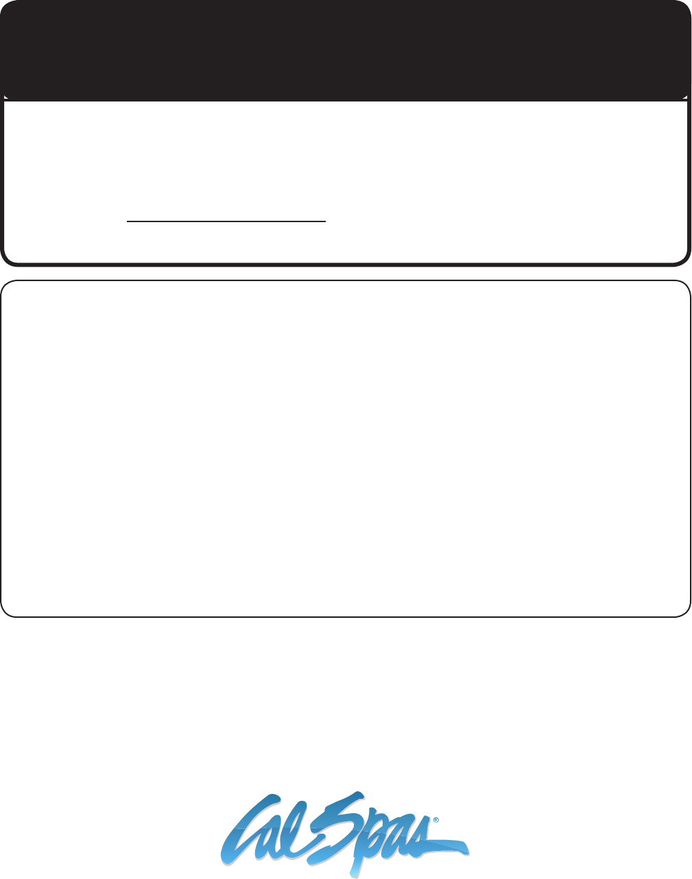 your Cal Spas product as soon as possible. By taking just a few quick minutes to register, you