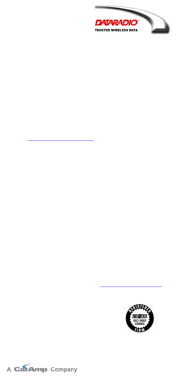 The entire contents of this manual are copyright 2007 by DATARADIO Inc.