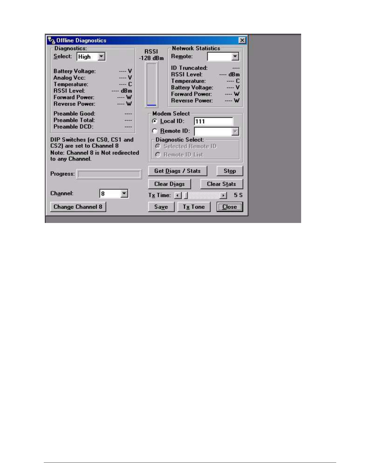 Temperature, Voltage, Local RSSI, Remote RSSI, Forward Power, Reverse Power,