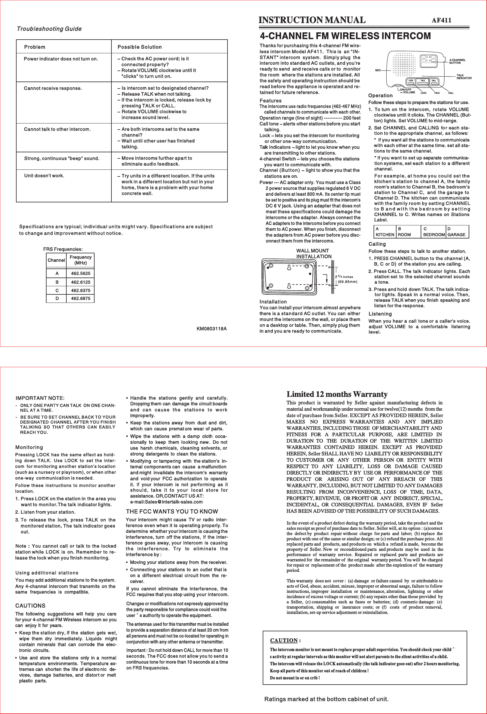 Calford Technology AF411 4 channel FM wireless intercom User Manual 1