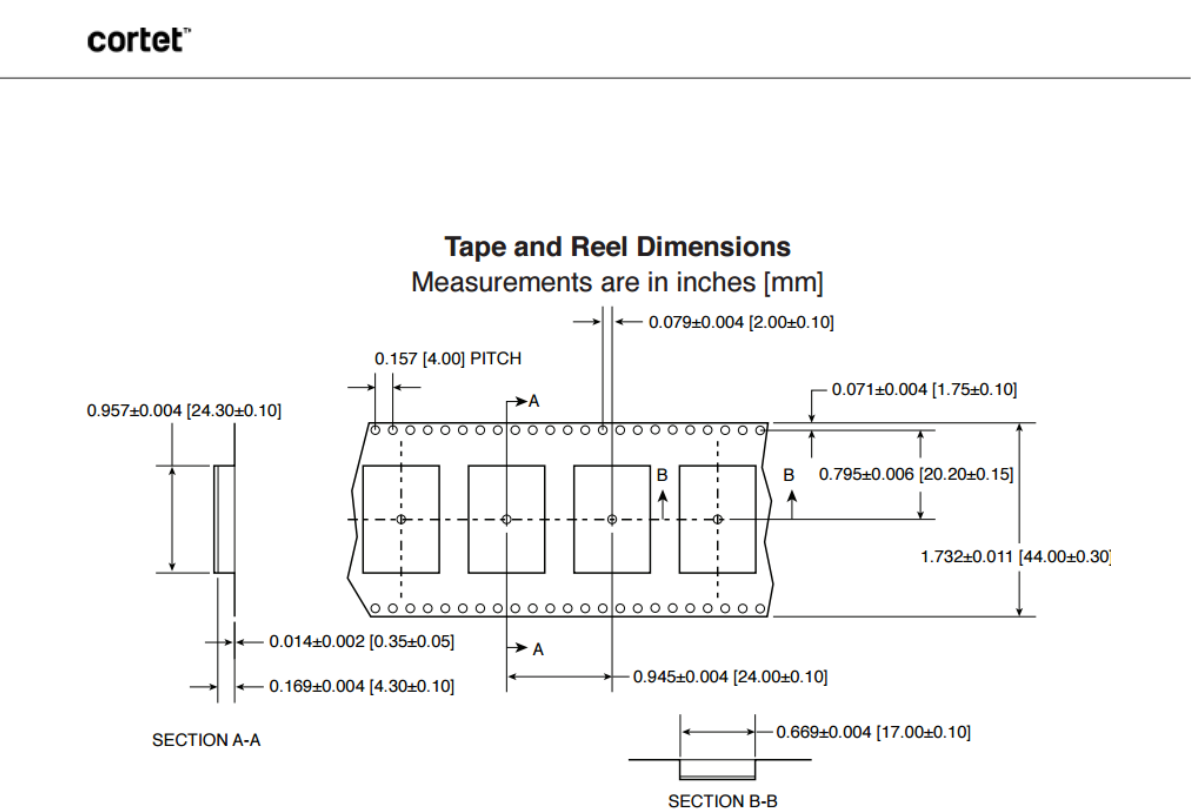 The Cortet modules are delivered in reels of 600 units. The reel diameter is 12.992 inches (330mm).