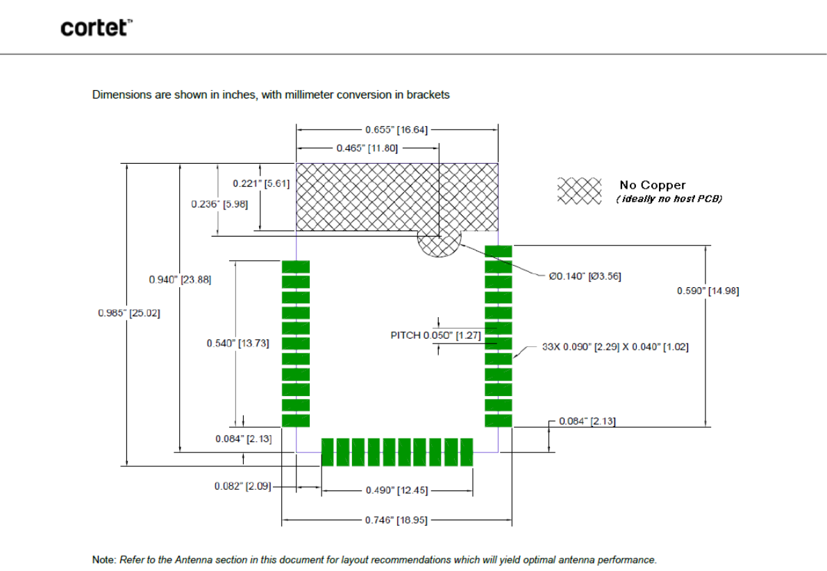 The OEM of the Cortet Mini Module may only use the approved antennas (PCB Trace Antenna) that have been certified with this