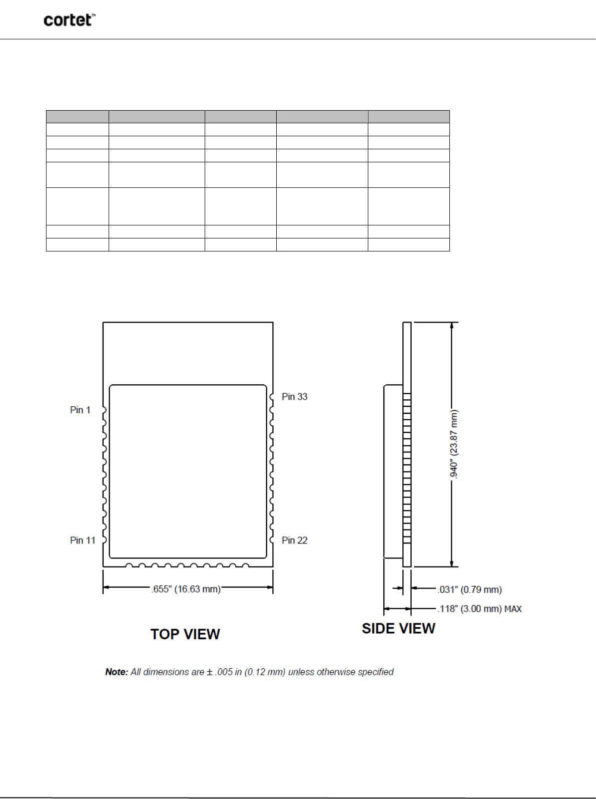 module. The OEM of the Cortet Mini Module must test their final product configuration to comply with Unintentional Radiator