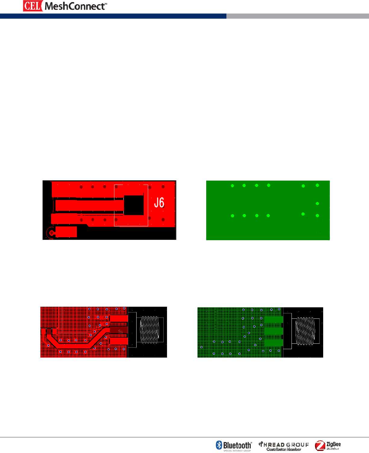 The figures below detail the Gerber layout for the using a U.FL connector for both the ZICM35xSP0-1C and the