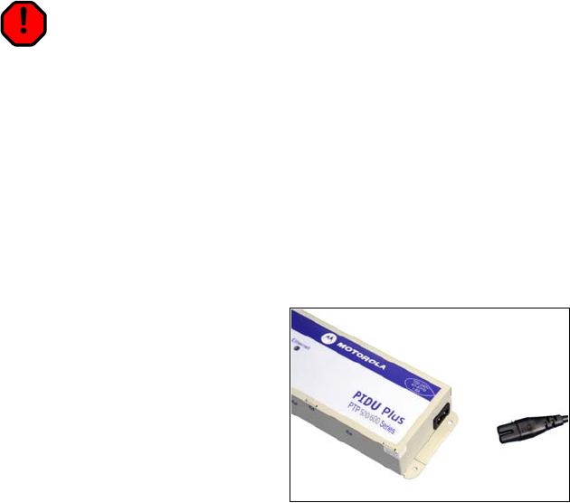 •Connect the ODU/PIDU into a power outlet on a circuit different from that to which the