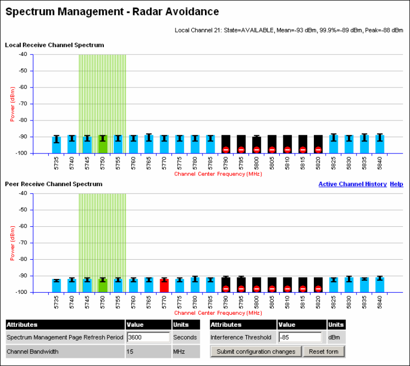 are operating, the 500 Series bridge will detect the 802.11a radio signals and choose a clear channel