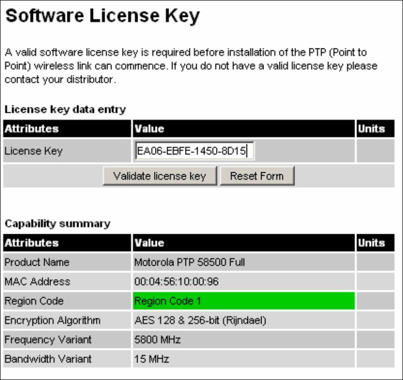 License Key for Region 12 (30dBm or 1W EIRP with Radar Detection)