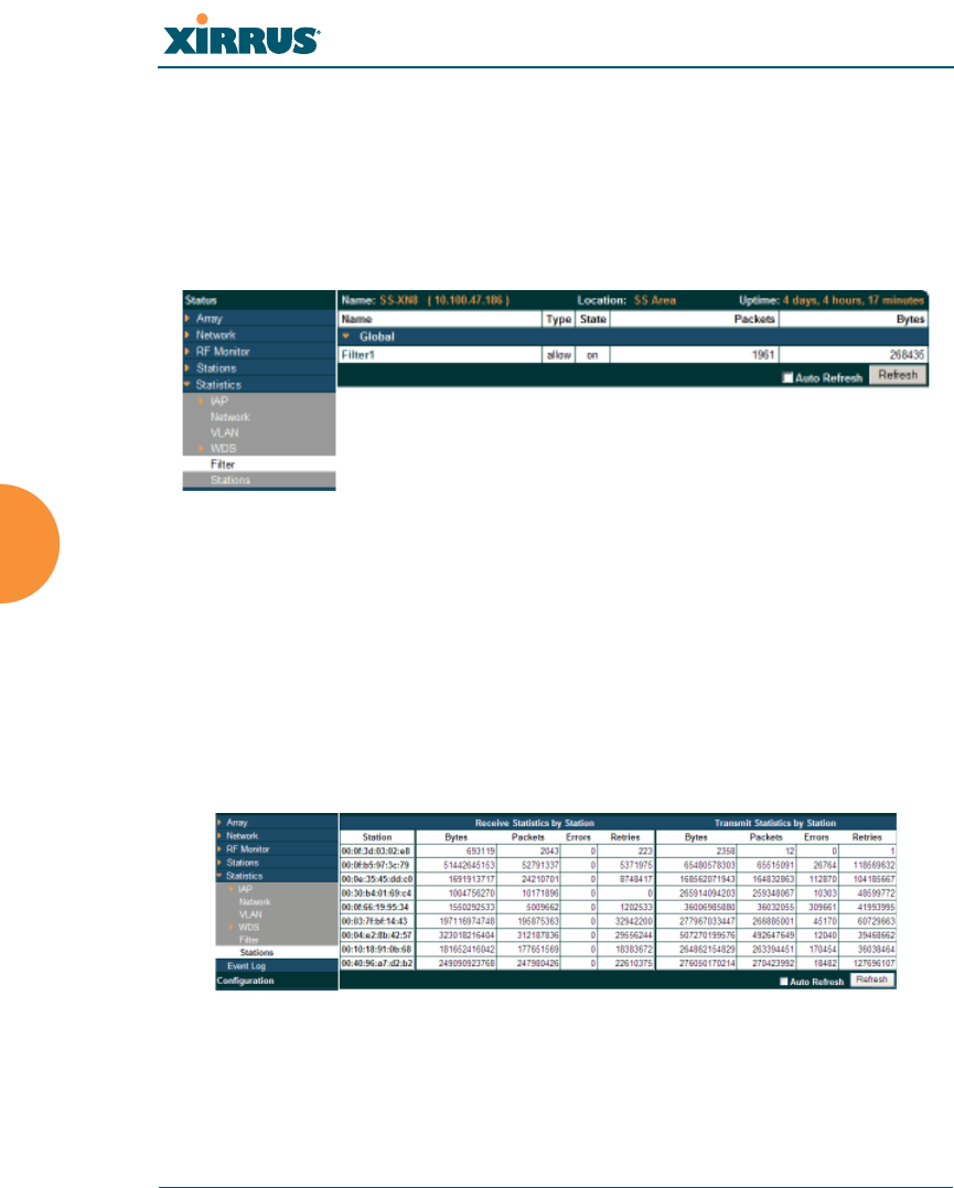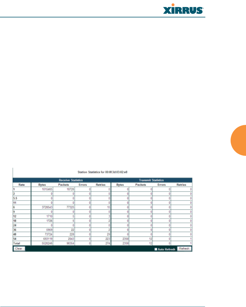 MAC address in the Station column and see “Per-Station Statistics” on page 133.