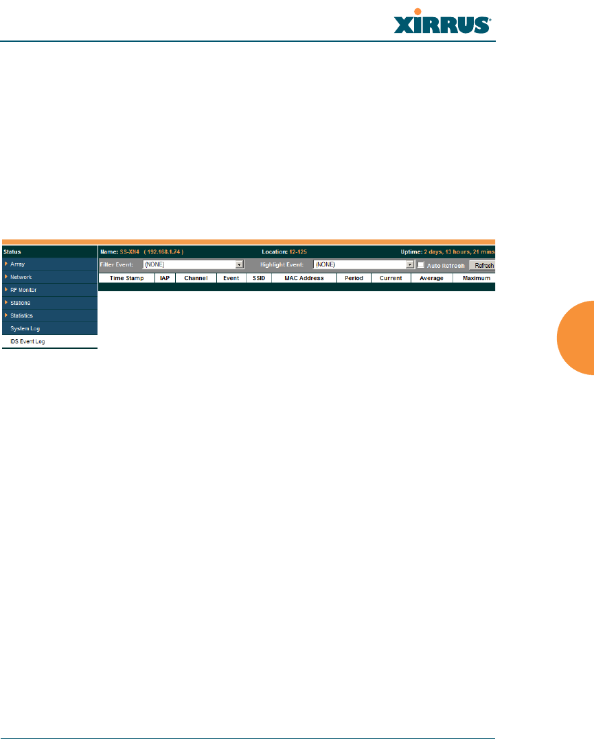 This status only window displays the Intrusion Detection System (IDS) Event log,