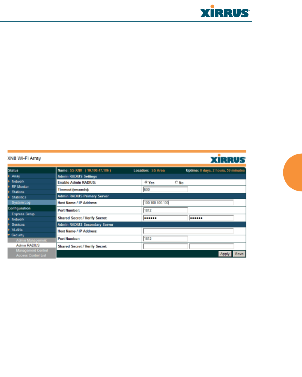 RADIUS server. If the primary RADIUS server becomes unreachable, the