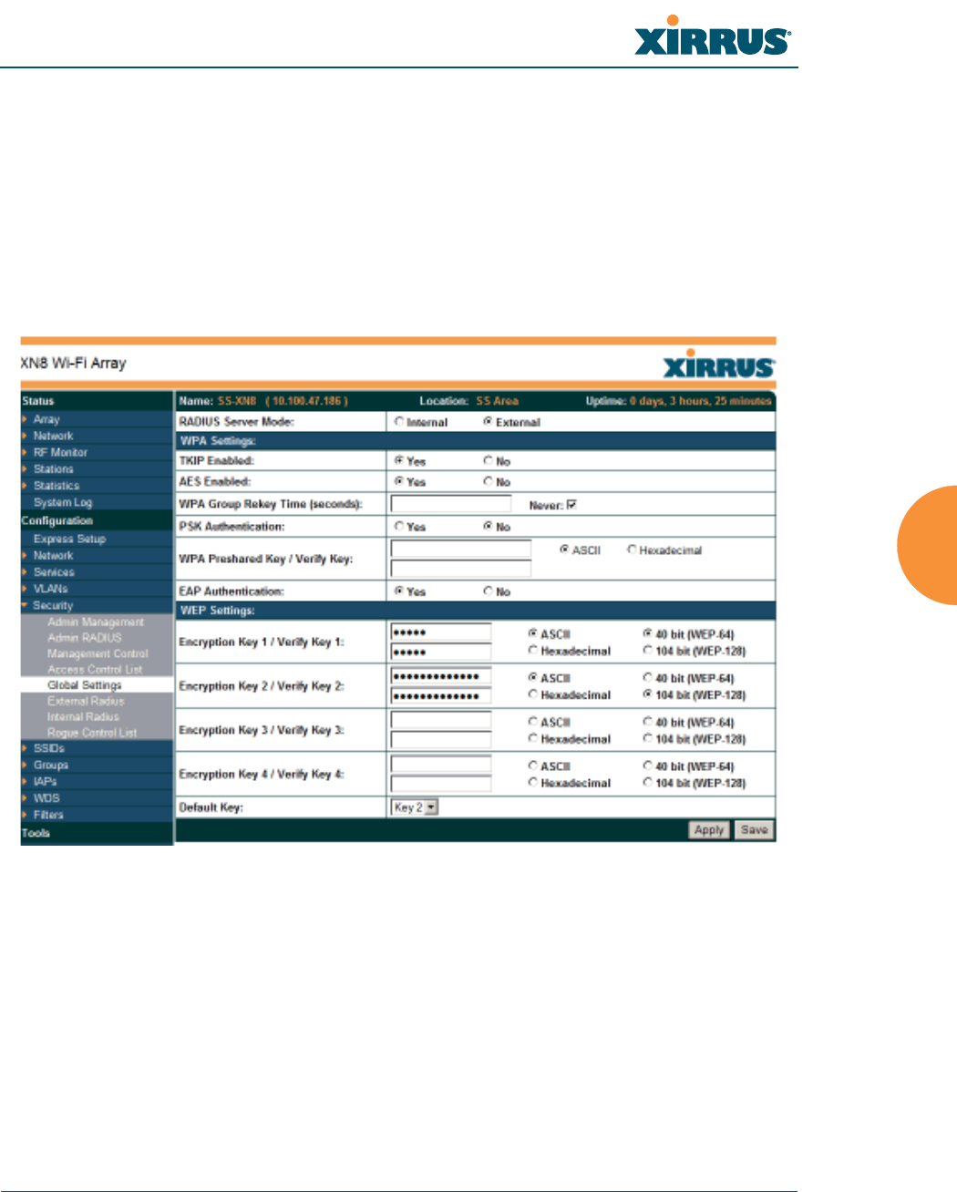 These settings are used if the WEP encryption type is selected on the SSIDs >