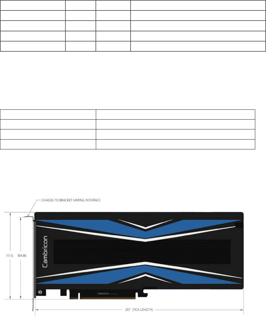 Table 1 PCIe Card hardware Specifications