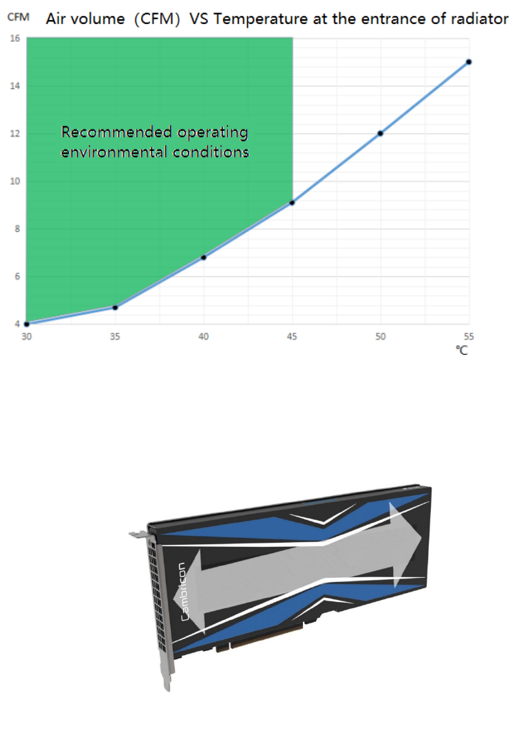 MLU100-C Series Intelligent Processing Card is using a passive heat dissipation method. The system