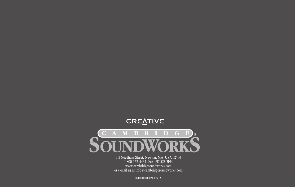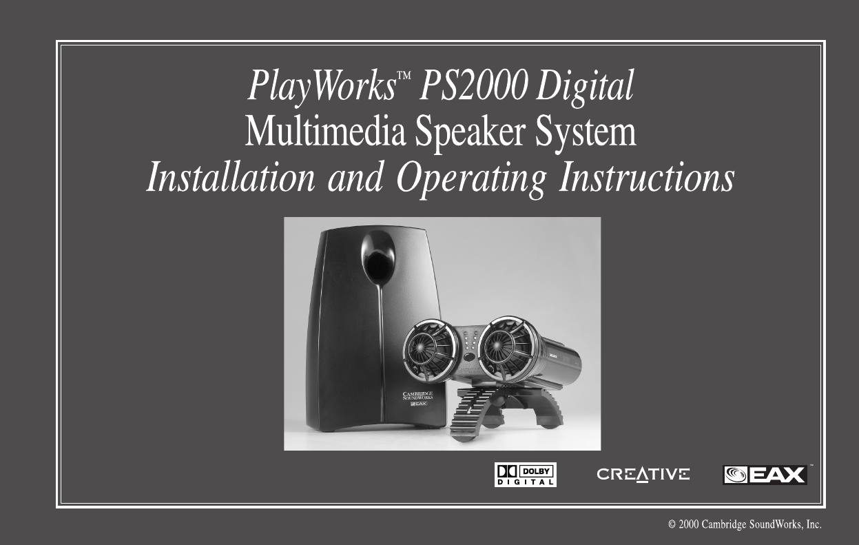 © 2000 Cambridge SoundWorks, Inc., All rights reserved. Cambridge SoundWorks is a registered trademark and Playworks is a trademark of Cambridge SoundWorks, Inc., Newton, MA.