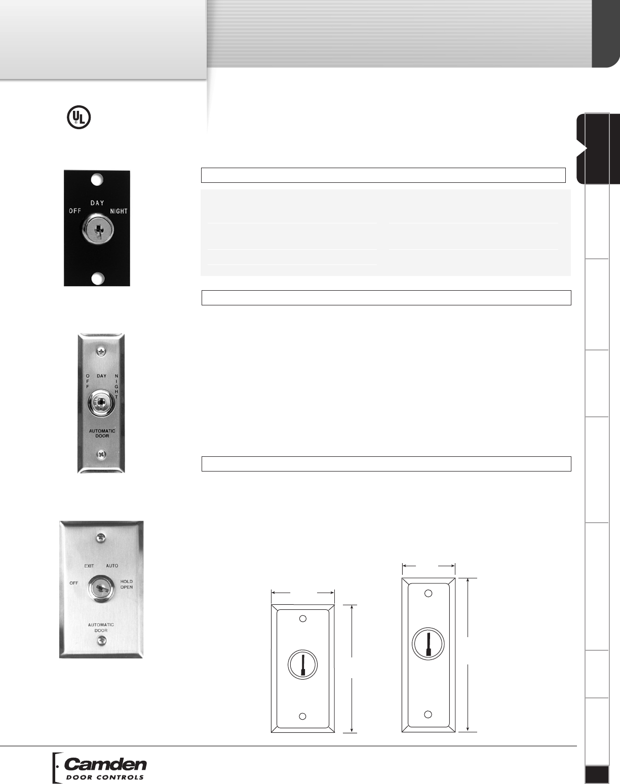 User Manual: Camden CM-160/170/180 Automatic Door Key Switches Specs